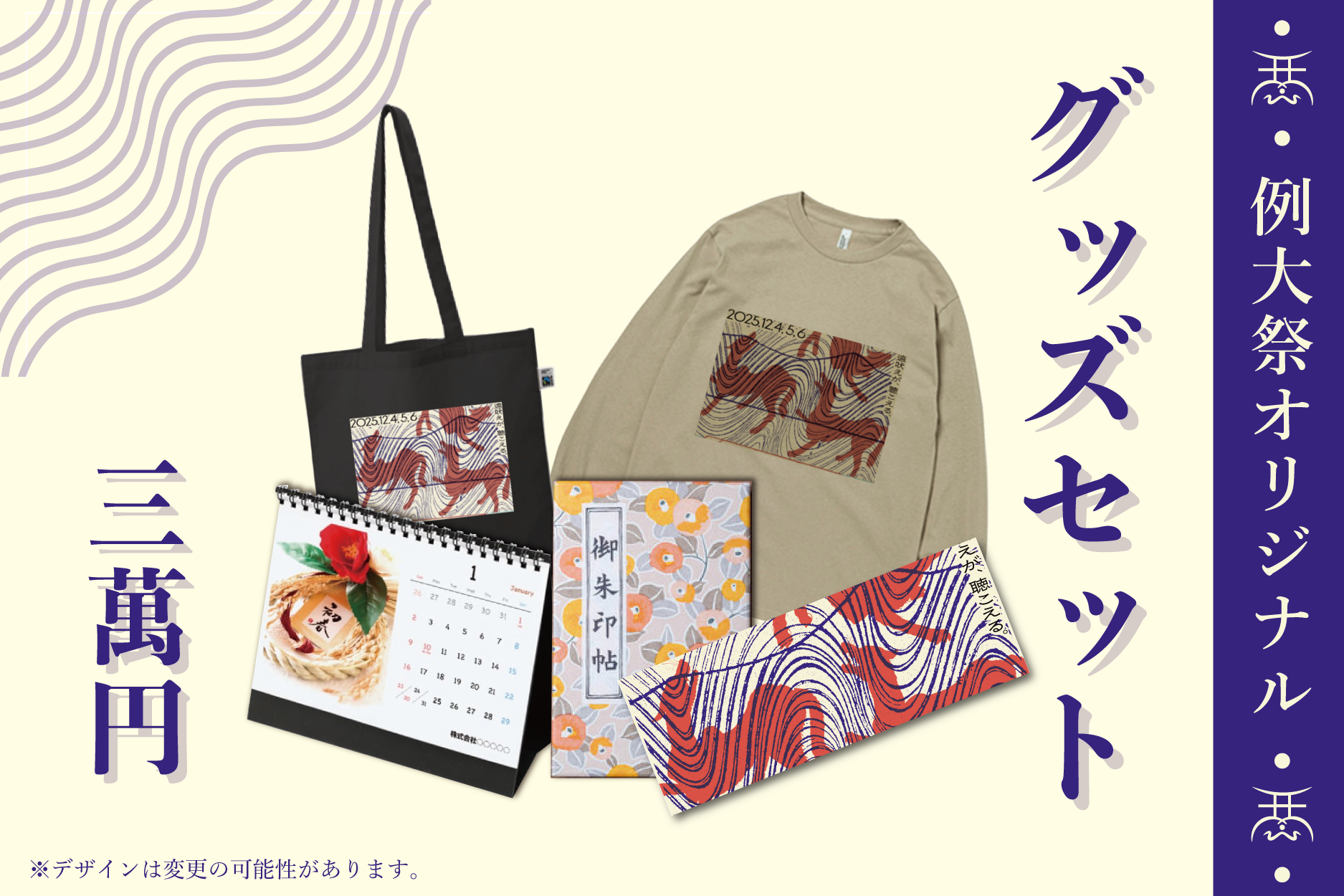 全てのグッズをまとめたリターンとなります。ロングTシャツ、トートバッグ、手ぬぐいはポスターデザインのパターンを採用し、2種類ご用意いたしました。それぞれ別々にご購入いただくより、お買い得です。それぞれ50セット限定となっております。