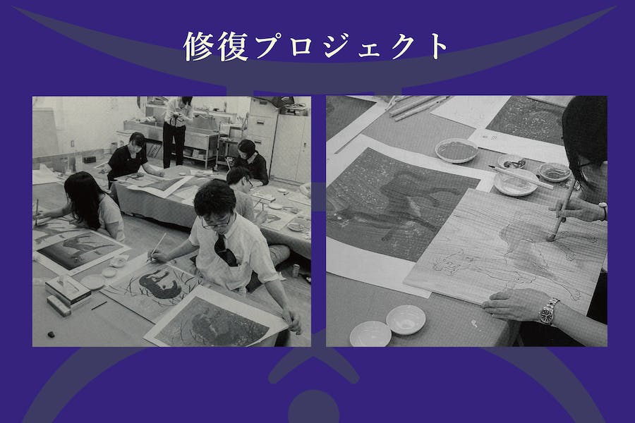 原発事故に起因する避難指示により、例大祭は小規模化され、更に2013年4月1日、神社の拝殿が火災にあい、狼の天井絵と共に焼失してしまいました。2016年には焼失した天井絵の修復プロジェクトが、東京藝術大学保存修復日本画科の協力とNPO法人ふくしま再生の会、和歌山大学の加藤久美教授とサイモン・ワーン特任教授により実施され、拝殿が再建されました。