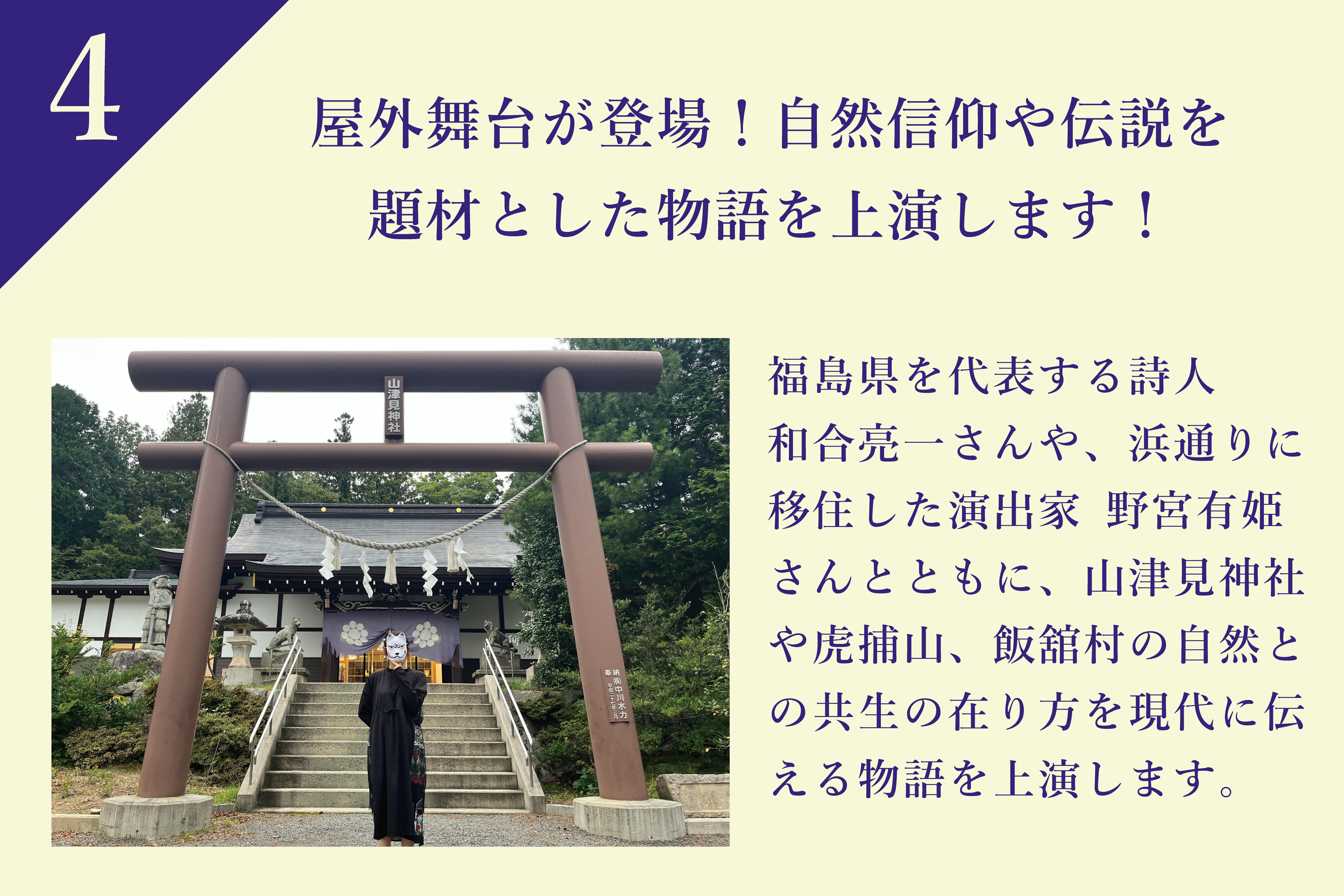 原発事故と長い避難生活を経て再び人が戻り始めた今の飯舘村で、「自然への信仰」や「人と自然が共に生きるとはどういうことか」という、私たちの根本にある問いを見つめ直し、現代にふさわしい、新たなかたちの“祭り”をつくっていきます。