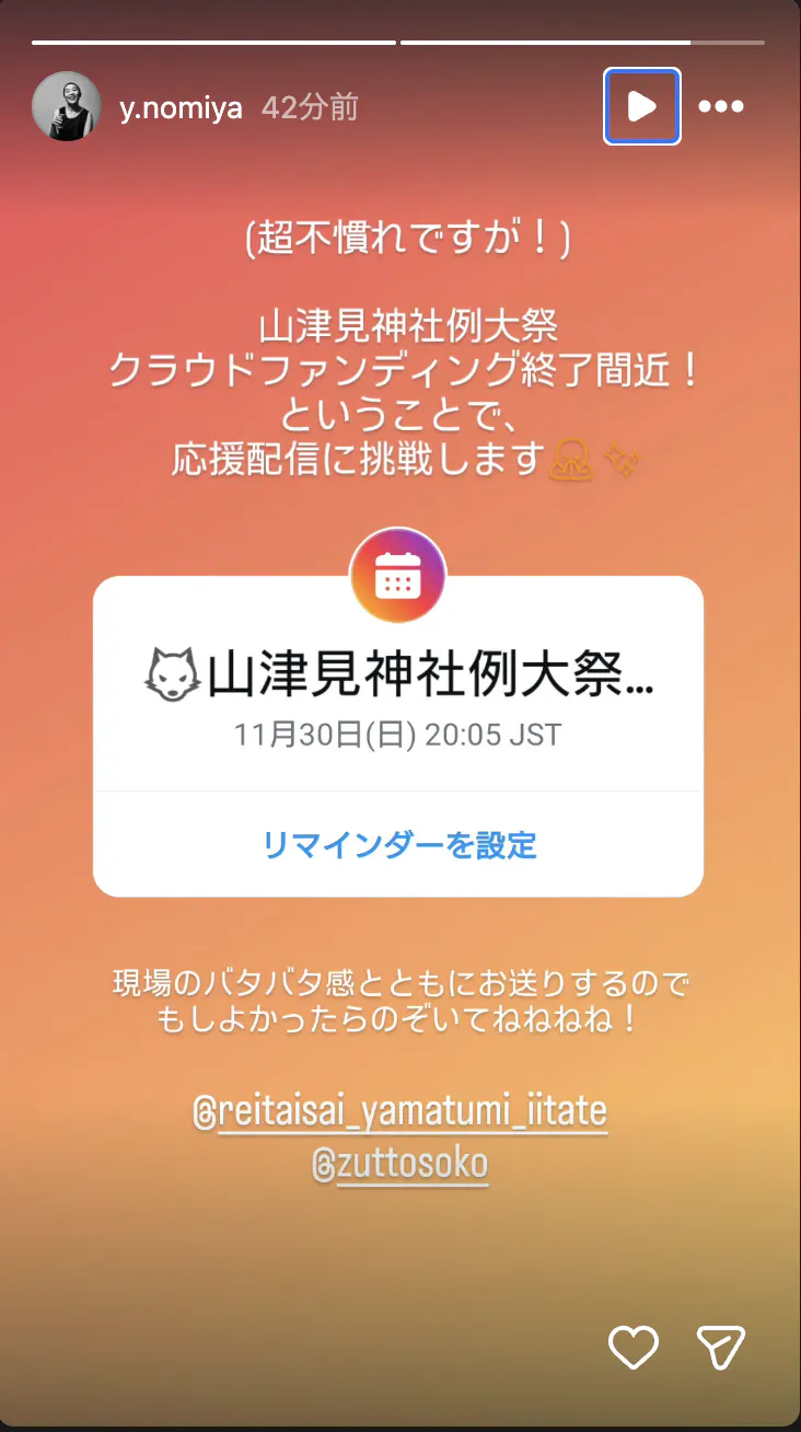 【20時より】Instagramにてライブ配信を行います