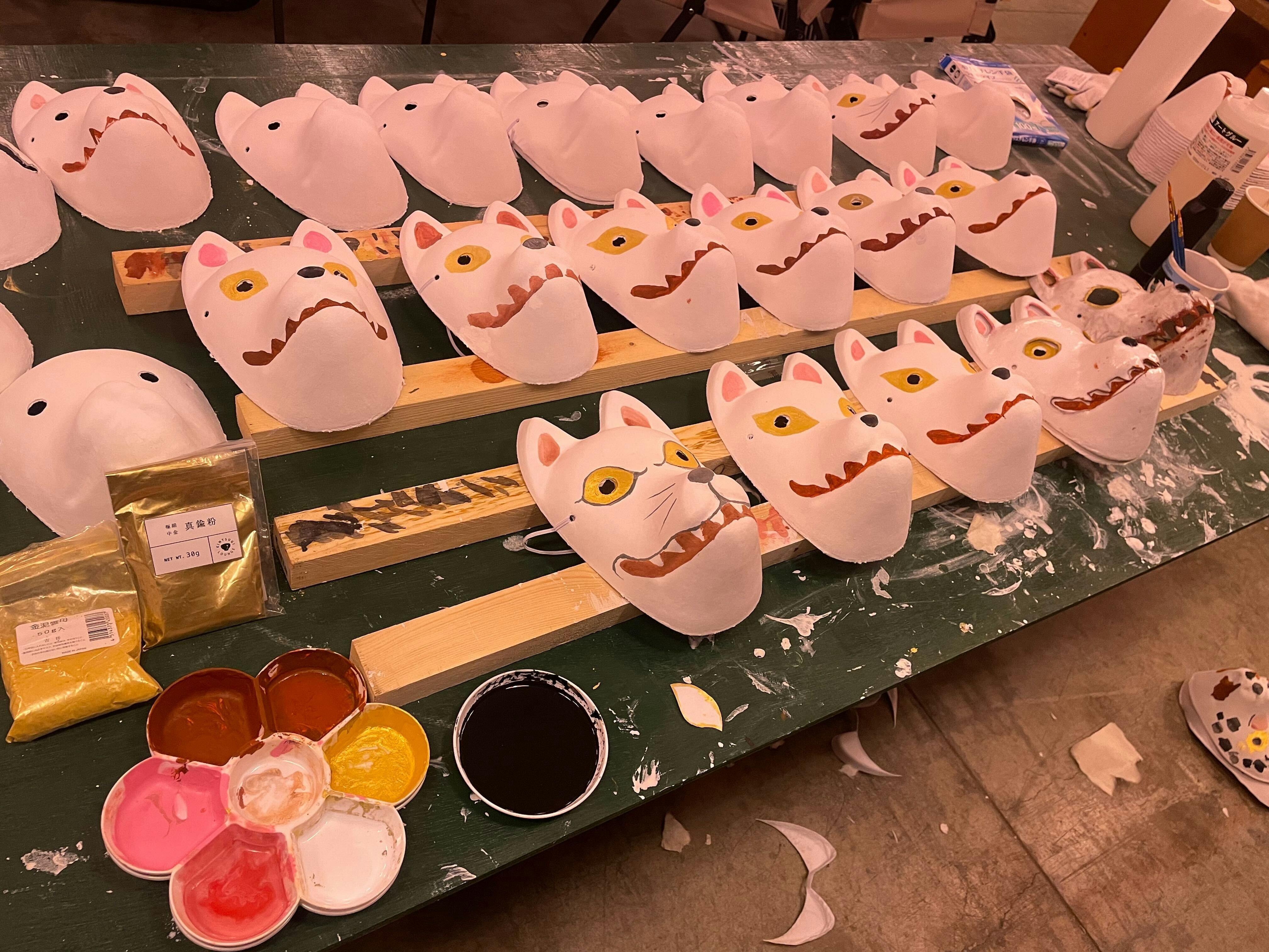 オオカミ伝説の伝承が残る虎捕山山津見神社。今回、参拝していただいた皆さんにもオオカミになりきっていただこうと運営側で準備したワークショップが狼面の絵付けワークショップになります。ぜひ皆さんにもお祭りではお面をつけて練り歩いたり、写真を取ってもらいたいです。