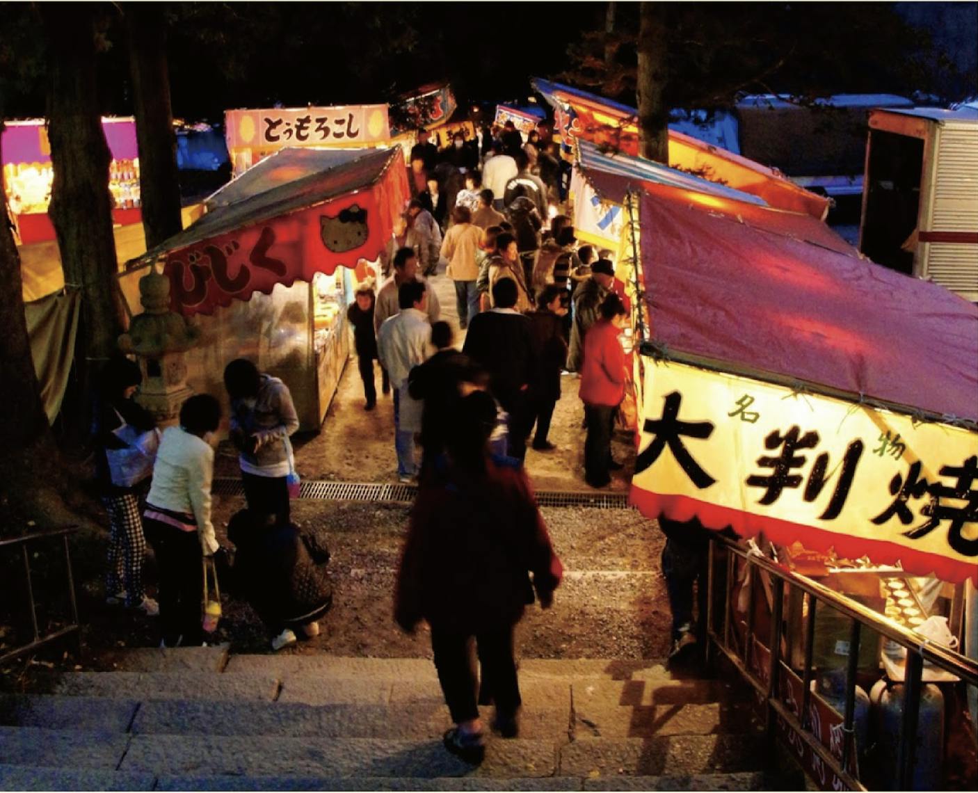 参道脇にお祭りならではの屋台が立ち並びます。また地域の店舗等から出店いただけることになりました。
