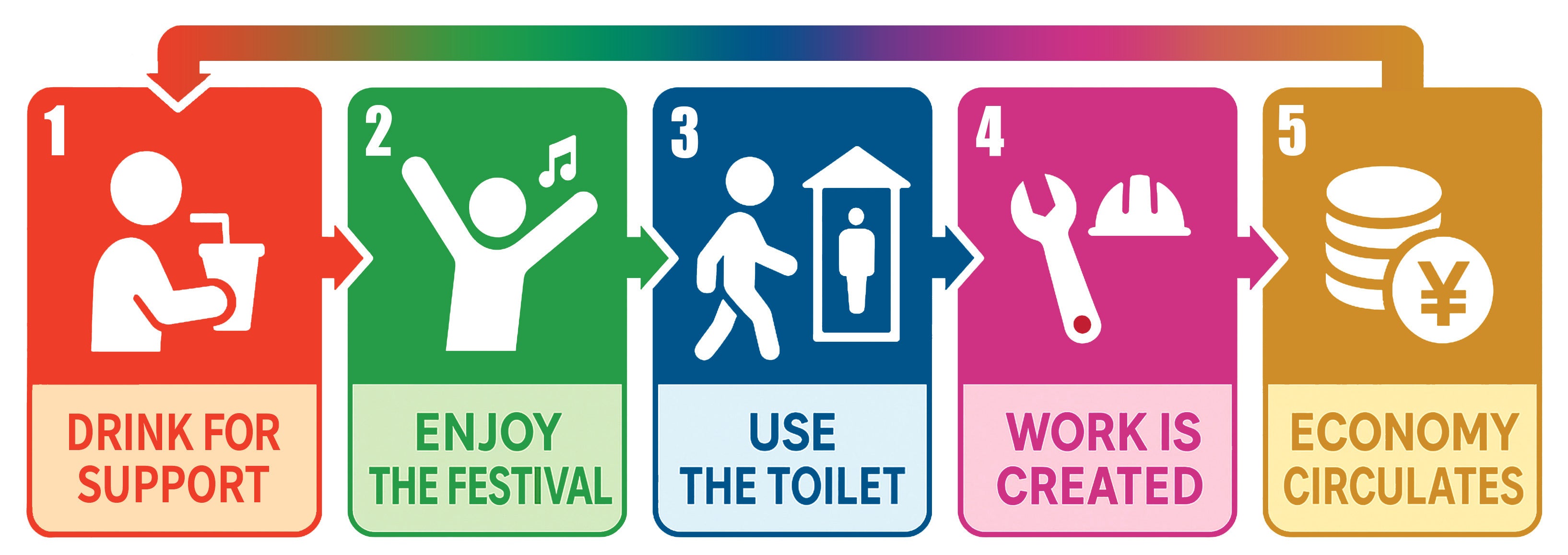 このサイクルは、単なるトイレ支援を超えて、持続可能なフェスの未来をつくるアクションです。