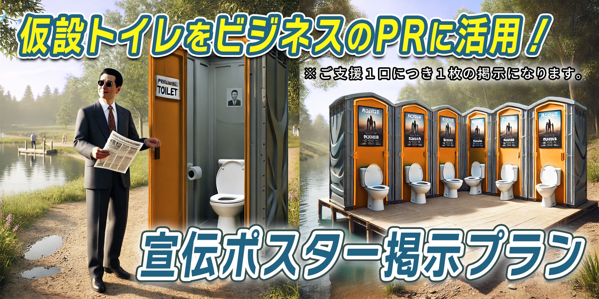 2日間で延べ25,000人が来場するフェスの仮設トイレを、商品・サービス・お店などのPRの場として活用しませんか?もちろんイベント、個人広告の方も大歓迎です!お待ちしております!(※ただし内容によってはお断りする場合がございます。雨天中止の場合の返金はございません。)(※印刷はこちらで行います。データはご自身でご用意ください。)