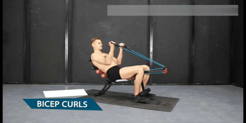 これまでベンチ型のトレーニングマシンは腹筋がトレーニングの中心でしたが、ローイングバンドが付いているので上半身の筋力トレーニングもすることができます。