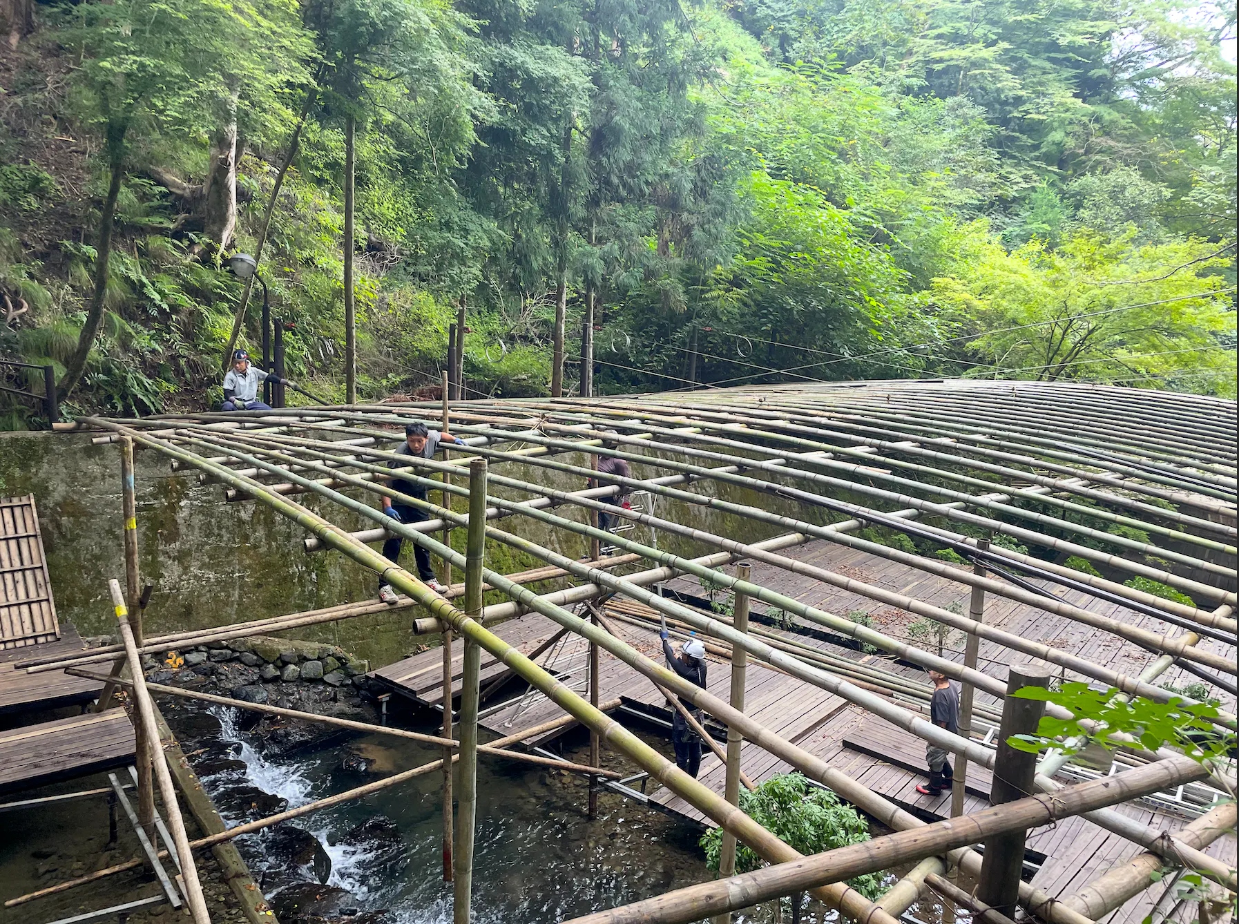 貴船の川床は、例年5月〜9月の期間で運営され、毎年職人さん達が組み立て・解体作業を行います。