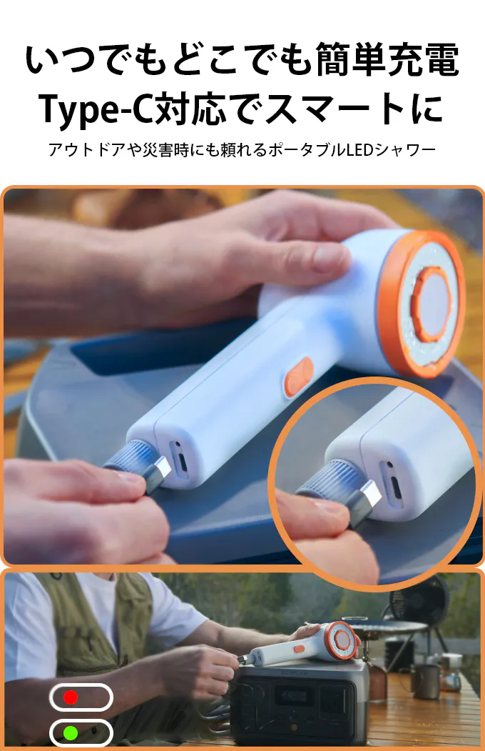 夜のキャンプや停電時、暗くて周囲が見えない中でシャワーを浴びるのが不安になる。そんな経験はありませんか?