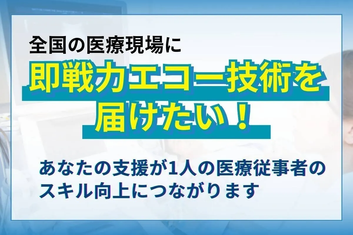 あなたの支援が、1人の医療従事者のスキルを変え、その先の患者さんの命を救う力になります。ぜひ一緒に、このエコー教室を全国に広げてください。