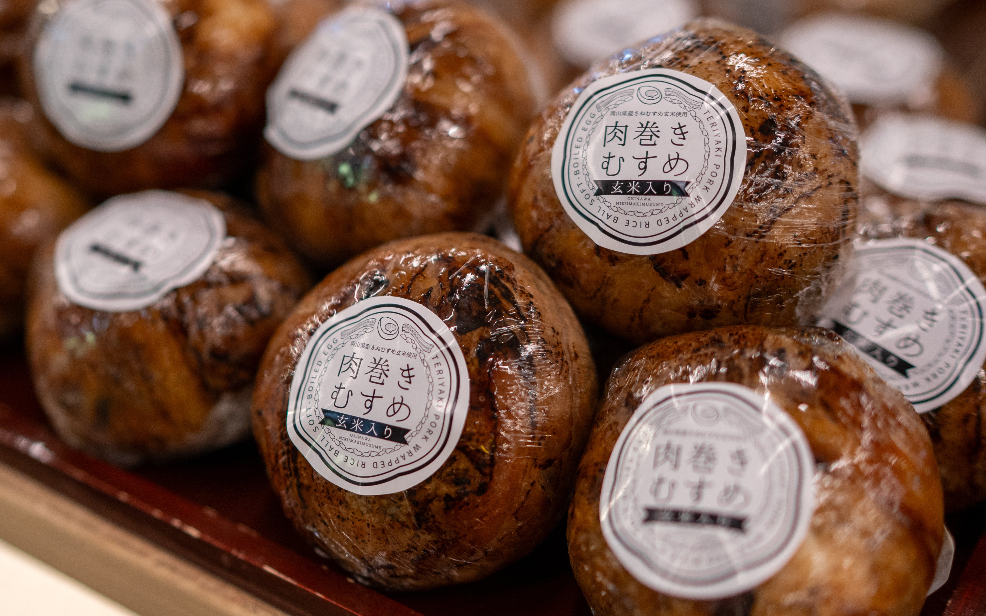 伊芸SA上下線で販売させていただいています。おかげさまで販売開始以来、お客さまからの評判は非常に良く、沢山リピートしていただいています。伊芸SA、中城PAの売場で見てみますと、肉巻きむすめの、あの野球ボールのような球体に吸い寄せられるように手を伸ばして、買われるお客さまの姿をよく見ます。