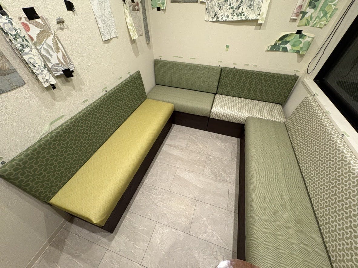 先日の活動報告の続きです。個室のソファが完成しました。