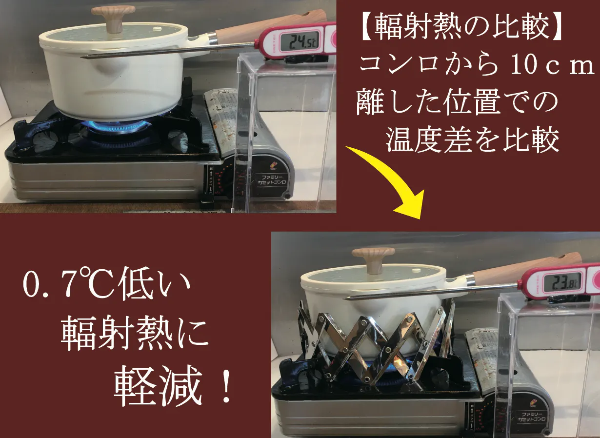 【実験①】コンロから10cmの位置での放熱を比較
