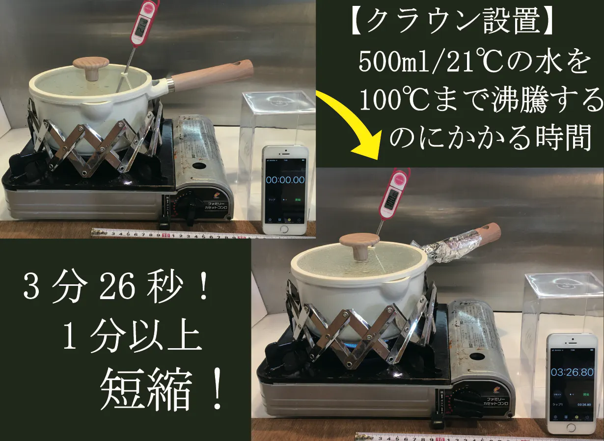 【実験②】500mlの水を沸騰させる所要時間魔法のクラウン設置!※自社独自での実験となります。