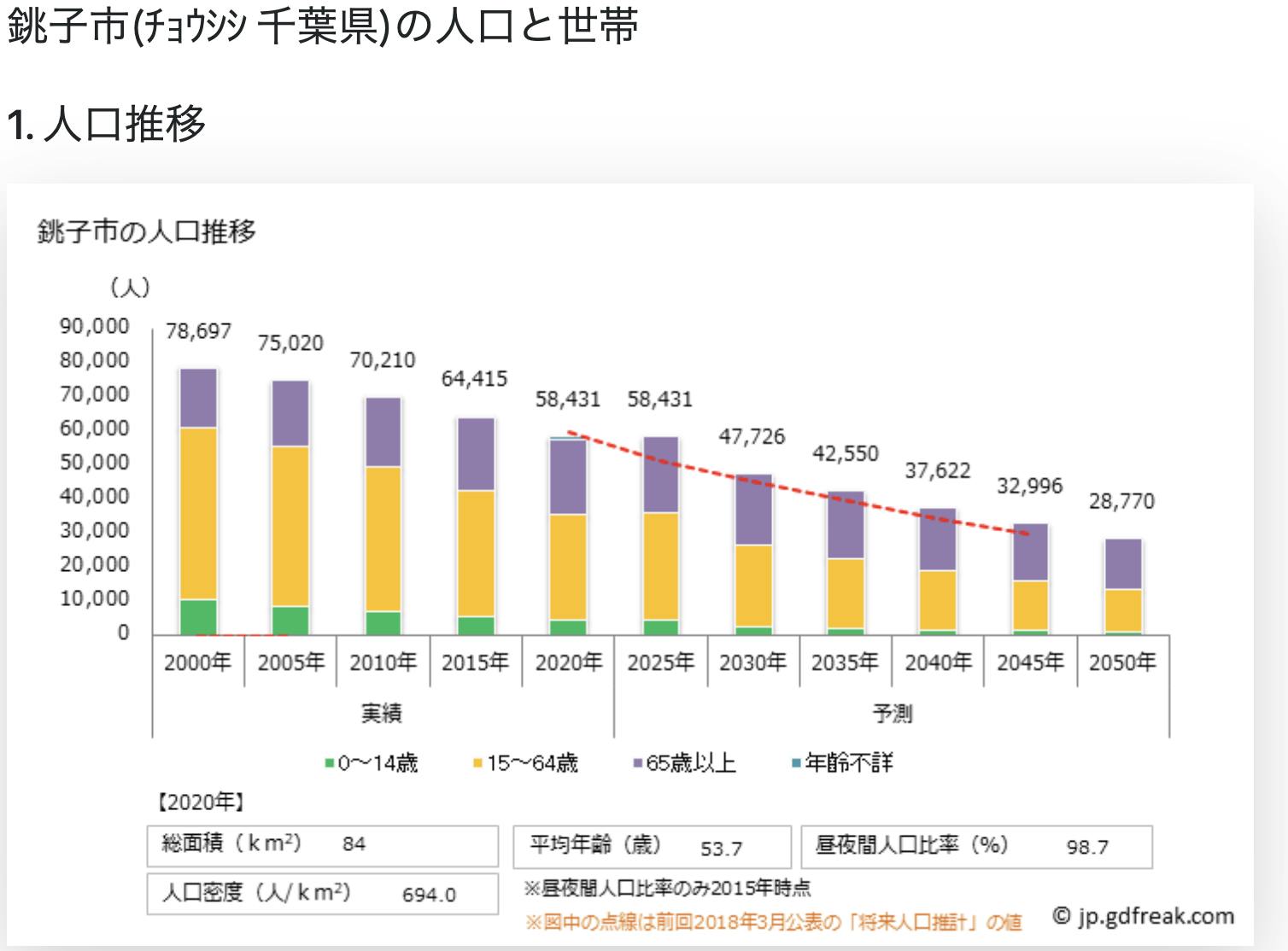 私達の住む千葉県銚子市は、人口が減少し続け2025年現在約 53,000 人になってしまいました。