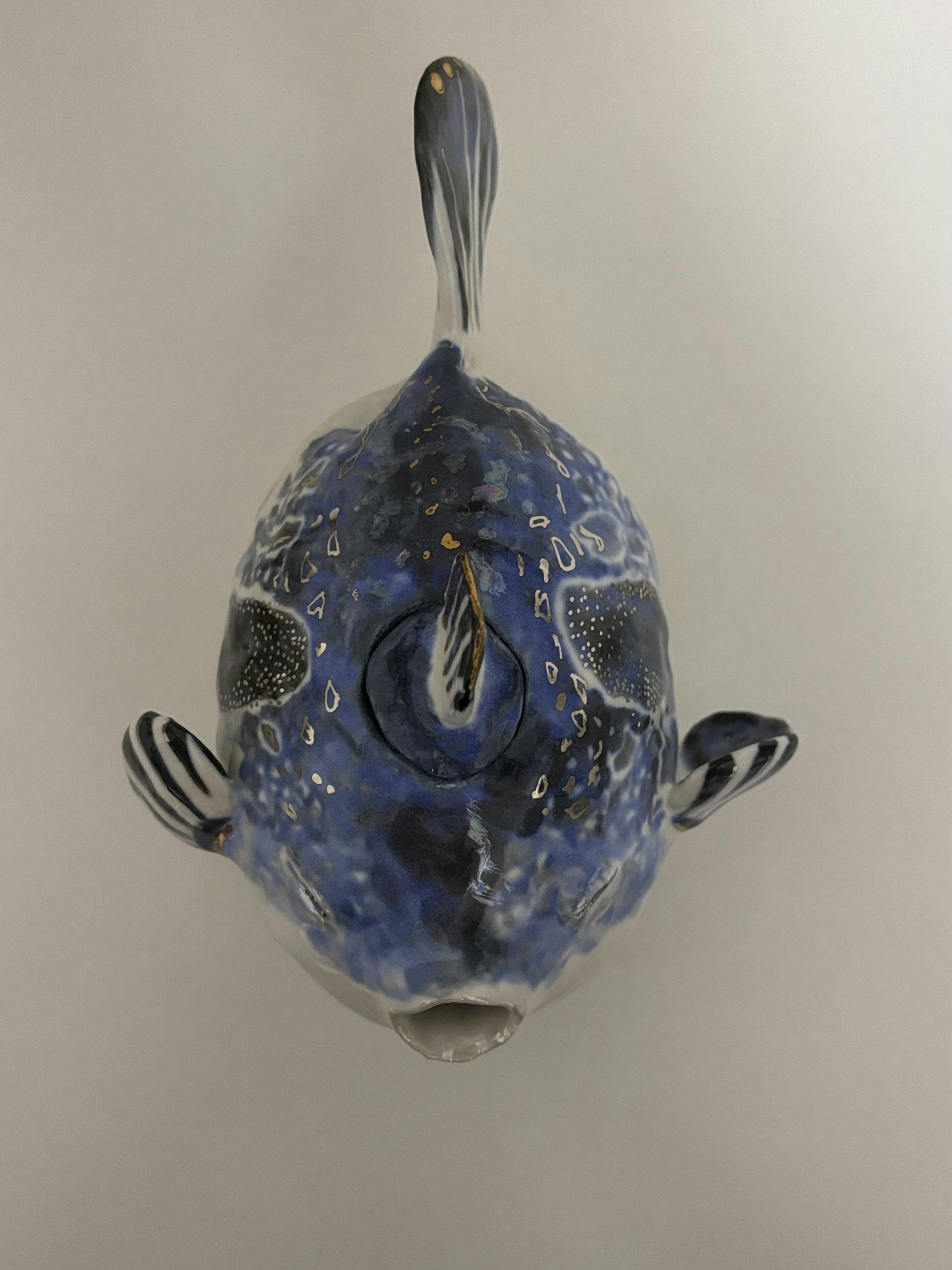 「人に癒しを与える作品を作りたい。」その思いから生まれたのがふぐをモチーフにした作品でした。大学卒業製作、私の作品にたくさんの方から嬉しい反応をいただけたことが私を作品作りに向き合わせてくれました。