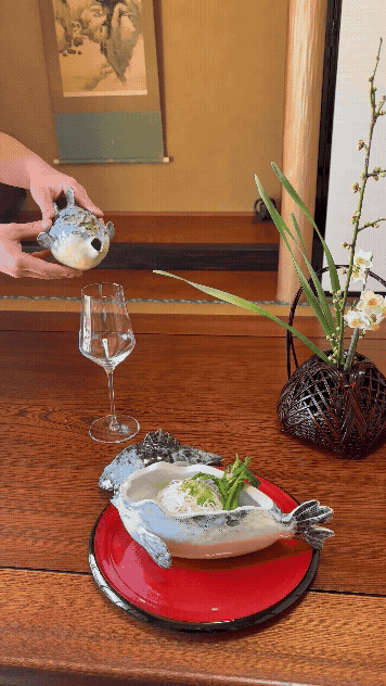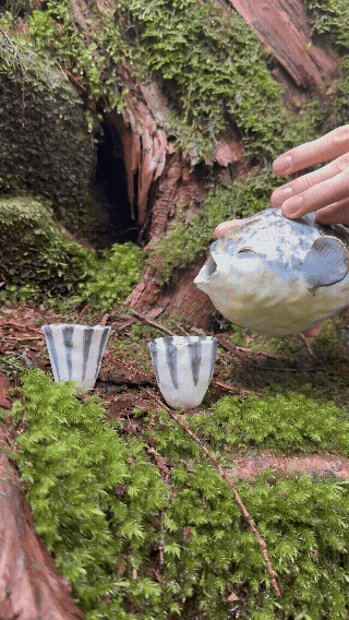 近年、若者のアルコール離れが社会問題化してることが私の中でとても重大なことだと考えております。健康志向の増加、物価の高騰など様々な要因が考えられますが陶芸家の私がこの問題に貢献できることは日本酒に新たな楽しみを与える事、、、それが「ふぐ酒器」でした。古来より日本では、フグは「福」に通じる縁起の良い魚として親しまれてきました。厳しい冬を越えて旨みを蓄える姿は、粘り強さと豊かさの象徴であり、その存在は祝いの席や節目の宴に彩りを添えてきました。この酒器は、そんなフグの姿をやわらかな造形で映し取り、手に取る人の心に静かな喜びをもたらします。日本酒を注ぎ、盃を交わす瞬間、そこには古くから続く日本のもてなしの心と、福を分かち合う文化が息づいています。日本の古くからの伝統も守っていきたいそんな思いかから今回のプロジェクトを立ち上げるに至りました。