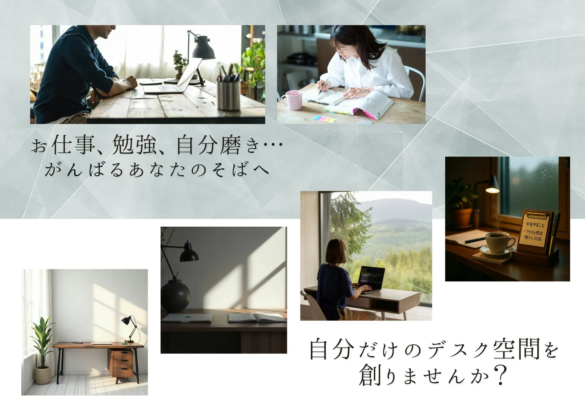 見えないところでがんばっている人。その人はきっと、自分の部屋でも努力している。誰かに見せるためでなく、自分を変えるため、誰かを支えるため、影で静かに汗や涙を流している人…私は、そんなあなたのそばに寄り添うデスクアイテムを届けることで「ひとりじゃないよ」とメッセージを伝えたい。現在大学生である企画者の私も、中学生の頃に容姿をからかわれ、いじめを受けたことがきっかけで自分磨きをはじめ、どん底にいた人生を好転させた過去がありました。だからこそ、今この瞬間にも影で努力している人がたくさんいることを理解していますし、今度は自分がその人たちを支える人間になりたい。そんな想いと夢を胸に、当ブランドおよびプロジェクトを企画し、「机の上から、肯定感とモチベーションを引き出すデスクインテリア」を追求し続けることを決意しました。