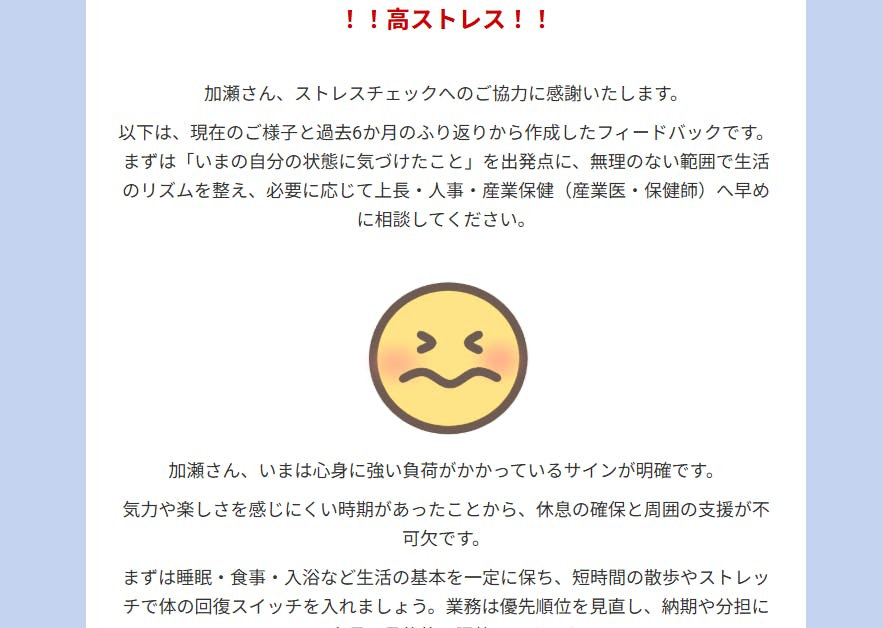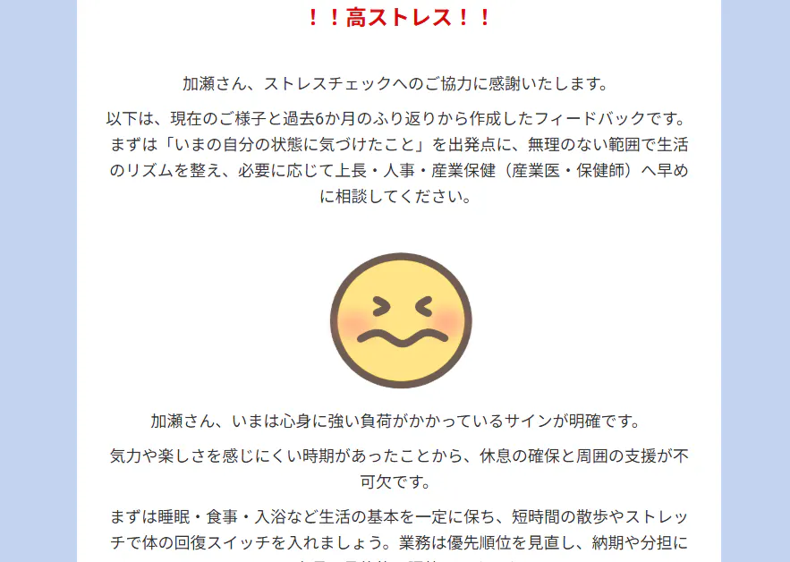 支援いただいた企業には、法令対応のストレスチェックや集団分析、