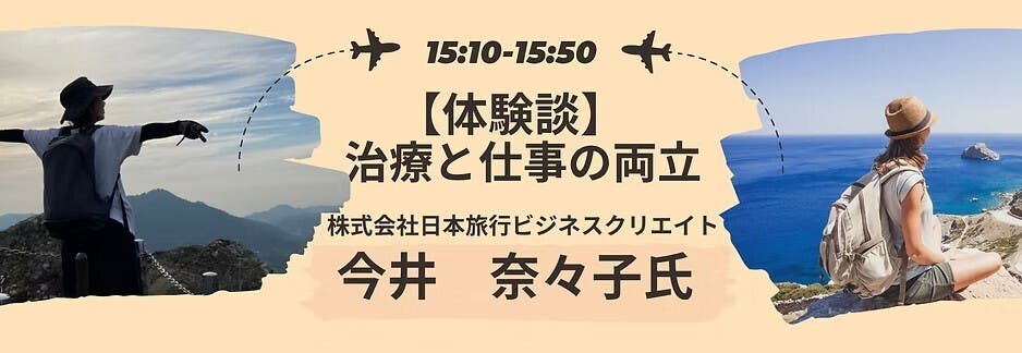 今井氏自身の体験をベースに、治療と仕事の両立における課題や企業サポートの必要性を共有。これまで第1回、第2回とご登壇いただき、毎回ご好評いただいている内容です。