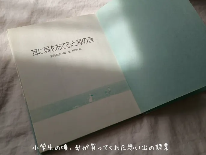 また、小学生だったある日、自分と同じ年頃の子供たちが書いた小さな詩集を母親に買ってもらいました。この詩集は子どもらしい純粋で素直な言葉が散りばめられていました。帰り道にルンルン♪で歩くわたしの顔を見る嬉しそうな母親の表情を今でも覚えています。