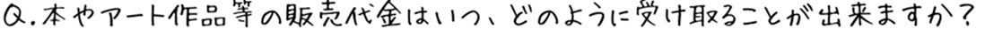 A.月末締め、翌月末にご指定の銀行口座への振込を予定しています(振込手数料は『よはくの本やさん』にて負担)。ただし、販売代金が税込5,000円未満の場合は、5,000円に達するまで『よはくの本やさん』で預かり、5,000円以上になったら翌月振込日に銀行口座に振り込みます。