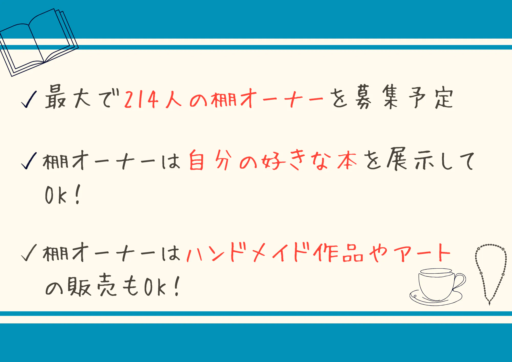10月からは本棚の製作を開始し、棚オーナーを随時募集する予定です。