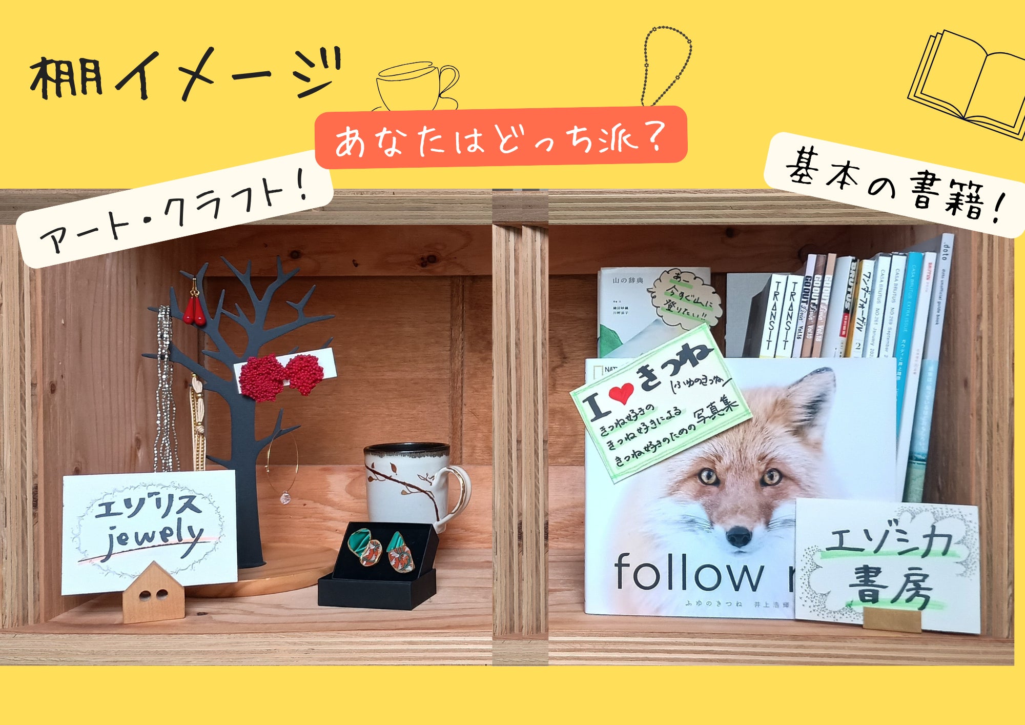今は余白だらけのこのお店を、本・クラフト・アートなどみなさんの「好き」を持ち寄り様々な物語が交差するお店へと作り上げたいと思い『よはくの本やさん』という名前にしました。
