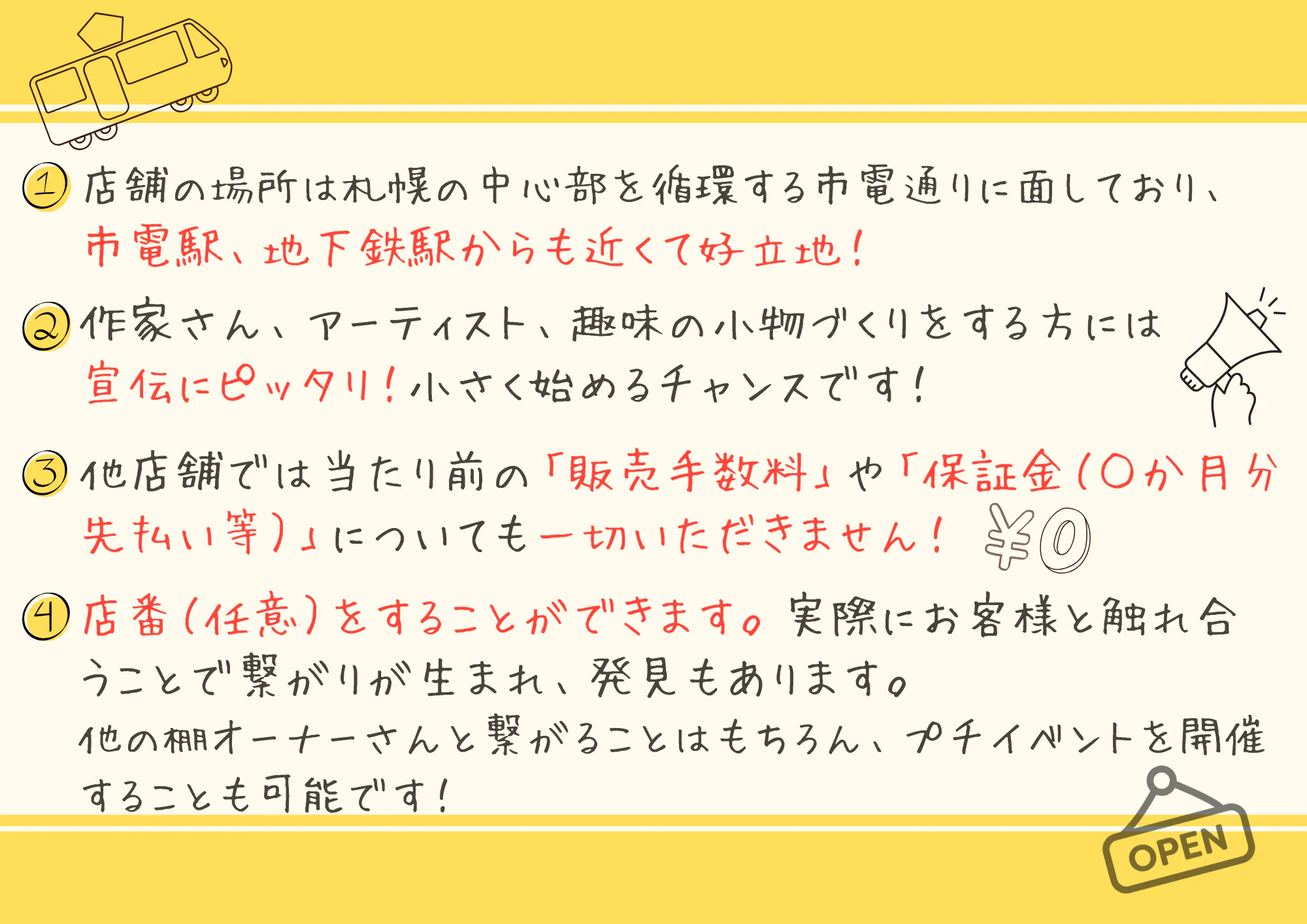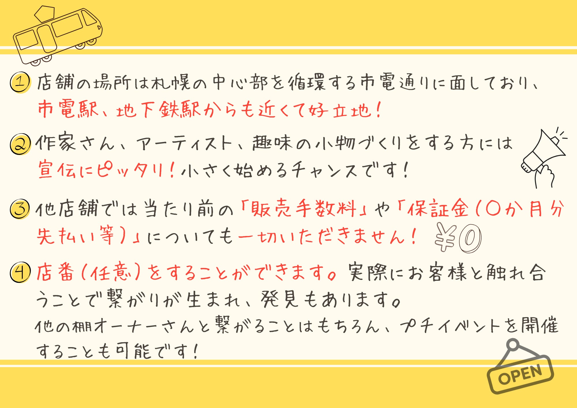🚃市電:西15丁目駅徒歩4分、西線6条駅から徒歩5分