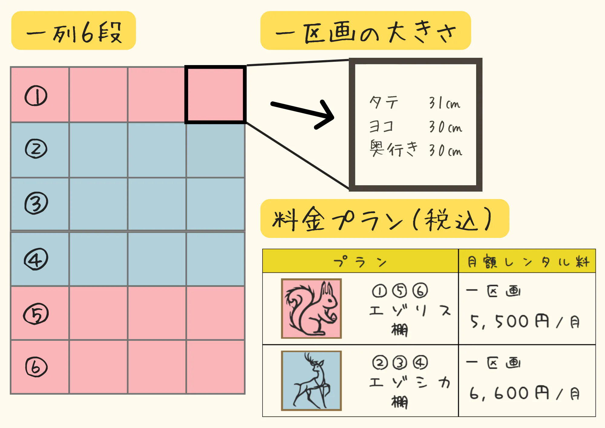 ※同じ契約期間の申し込みの場合、先着順にて棚の場所をお選びいただく予定です。