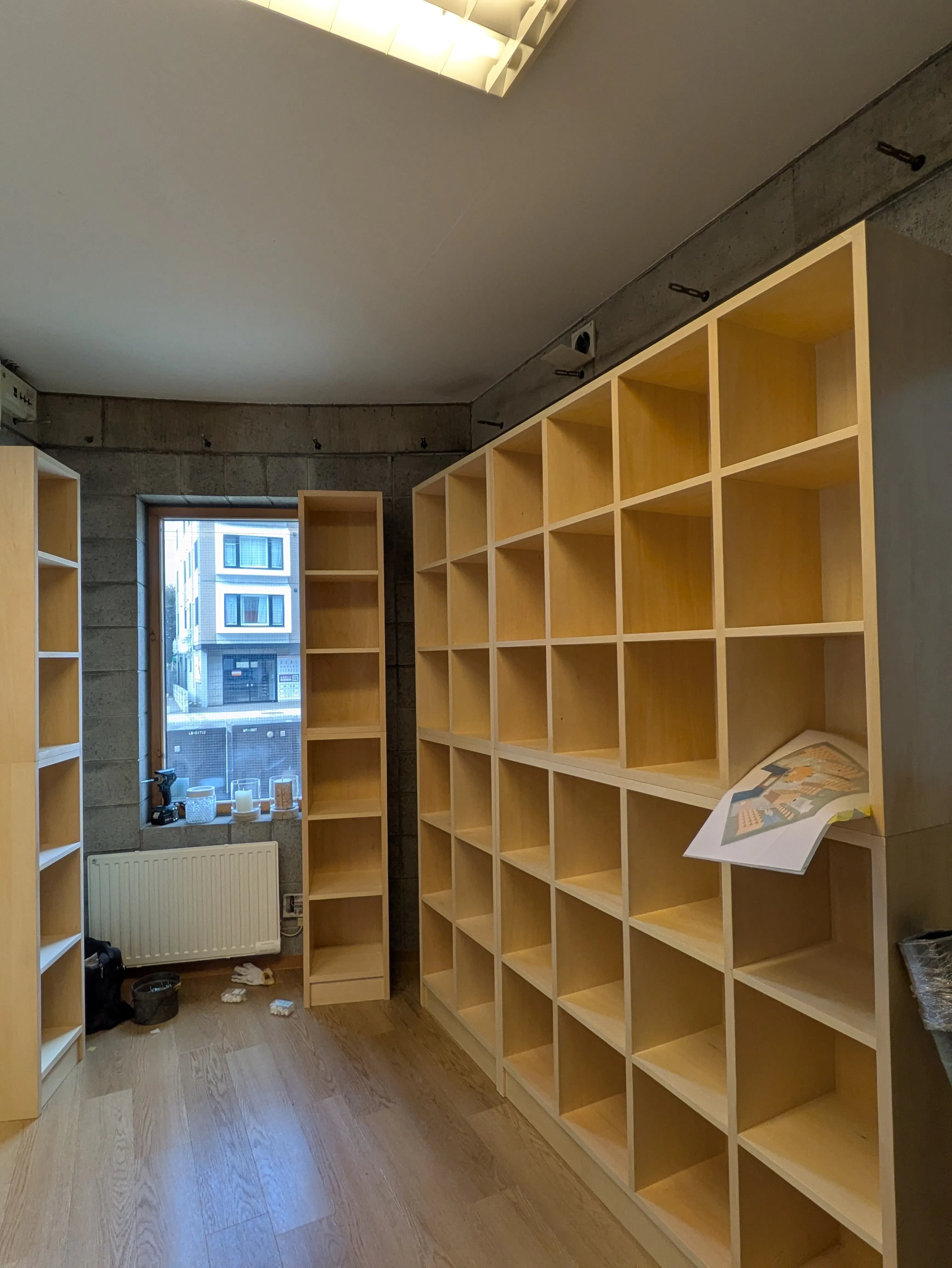 ただ今、本棚を設置しています♪