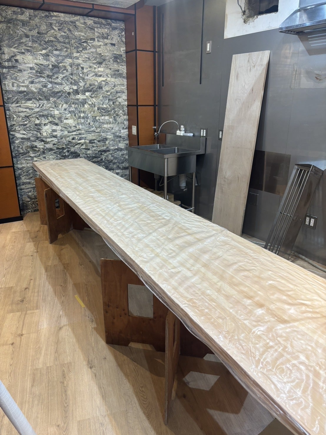 カウンターになる一枚板が入った♡