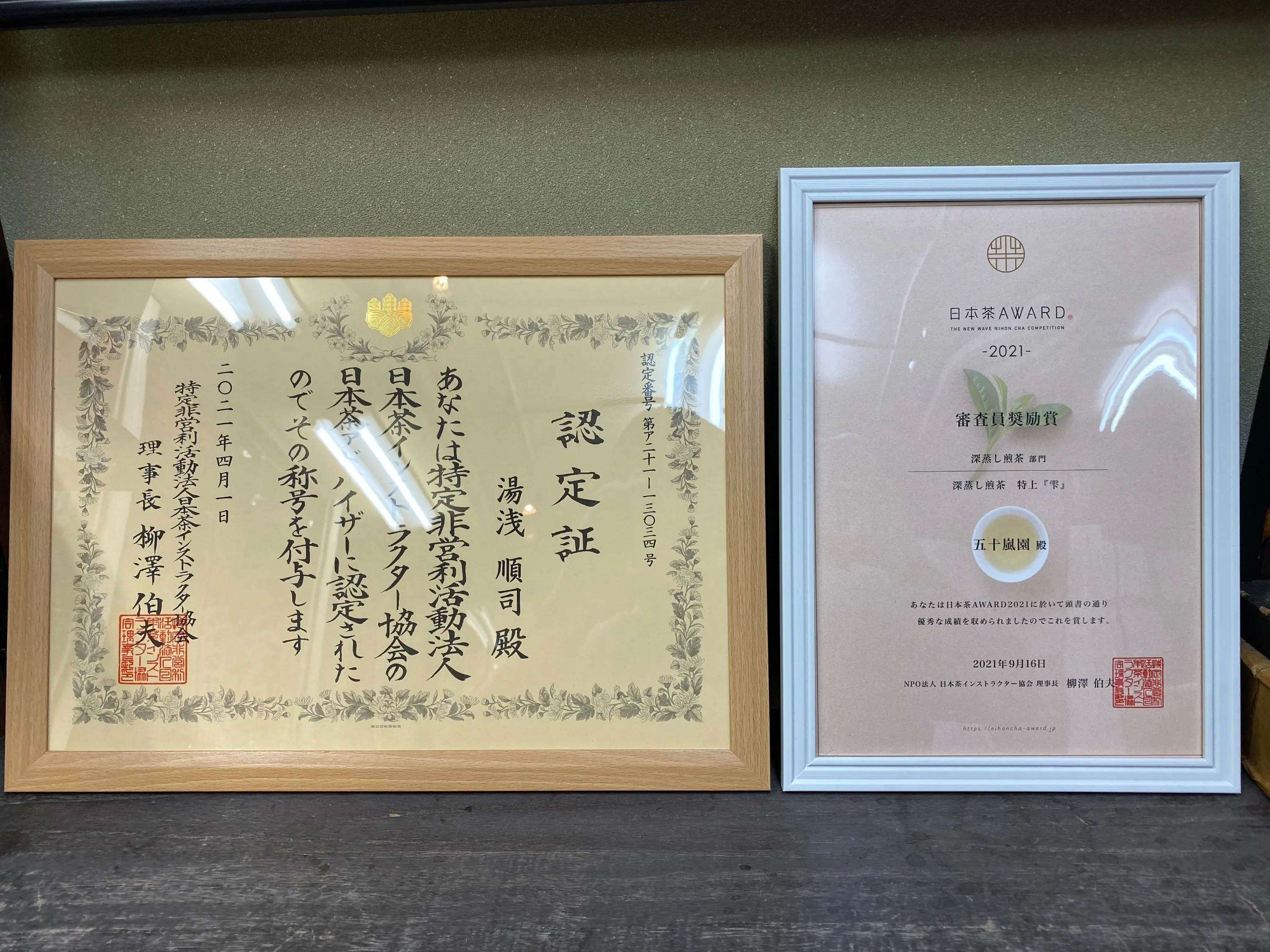 2021年には、日本最高峰の日本茶品評会である「日本茶AWARD2021」にて、五十嵐園オリジナルの深蒸し煎茶『雫』が「審査員奨励賞」を受賞。味でもしっかりとした評価をいただいております。