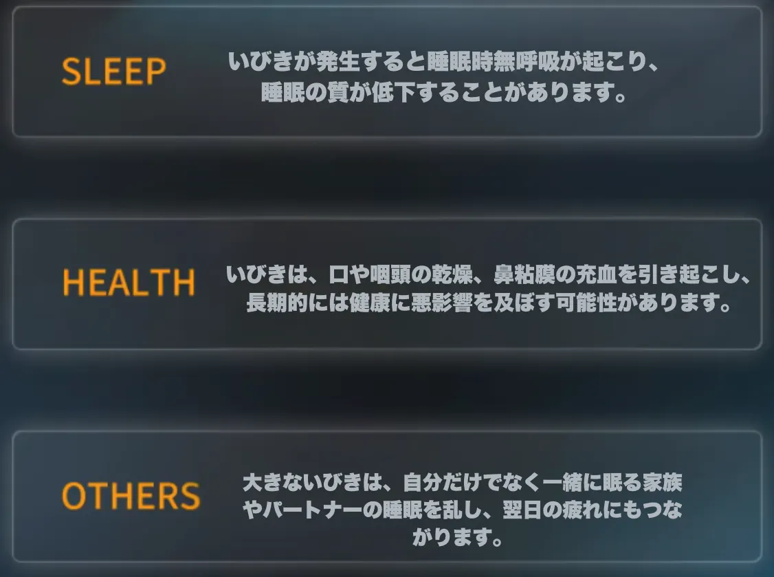 いびきは多くの人に共通する悩みです。そしてそれは単なる音の問題だけでなく、「睡眠の質」にも影響しているかもしれません。