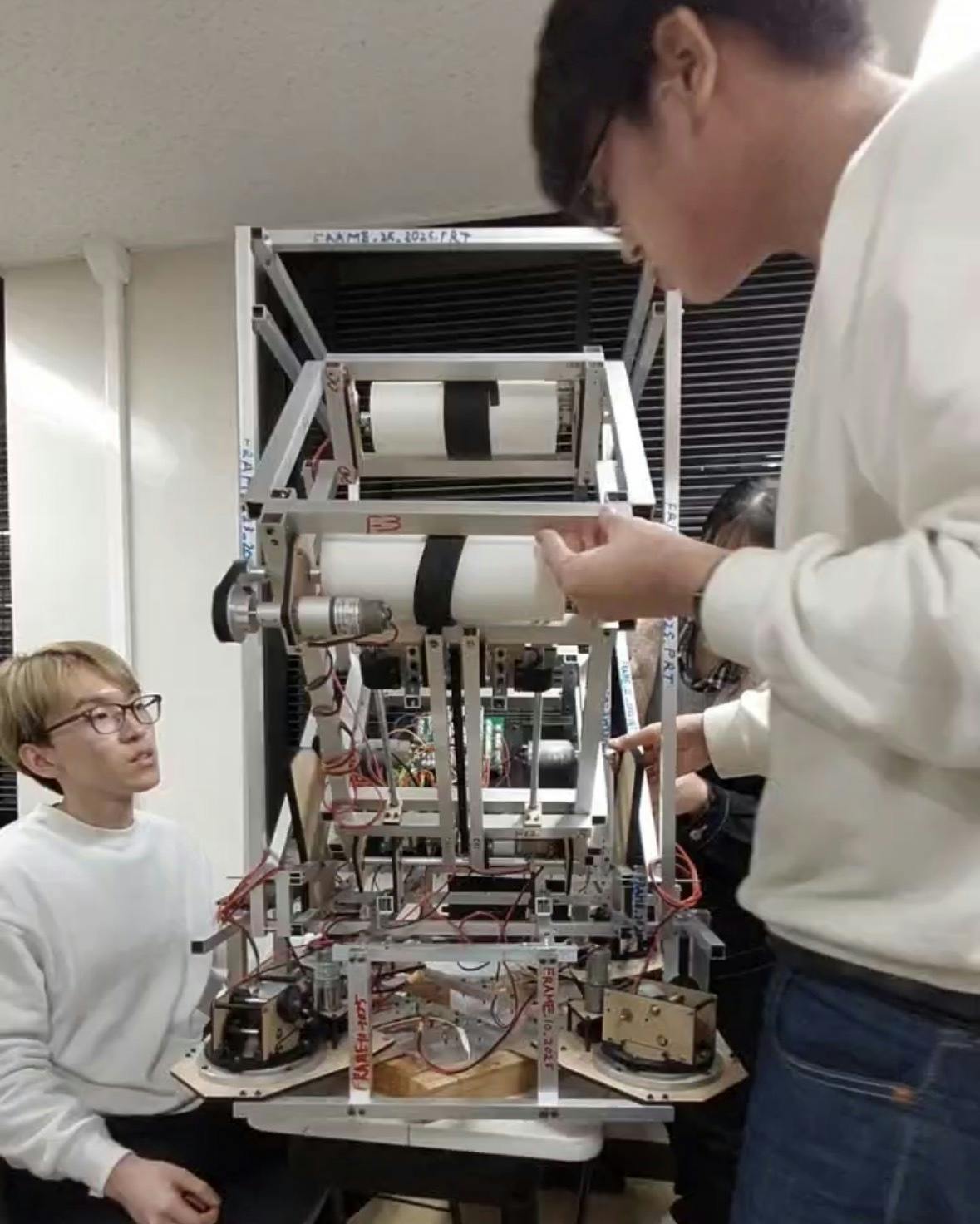 今年は、ルールが発表されたころから、アイデア出しを始めてどのようにして強豪校に勝てる機体製作ができるのかを部員全員で話し合いながら製作を行い、2月の一次審査を通過することができました。しかし、ブラシモータでのトルク問題や制御面での通信環境の悪さによってアイデア通りの機体を完成させることができず、二次審査を通過するこができませんでした。