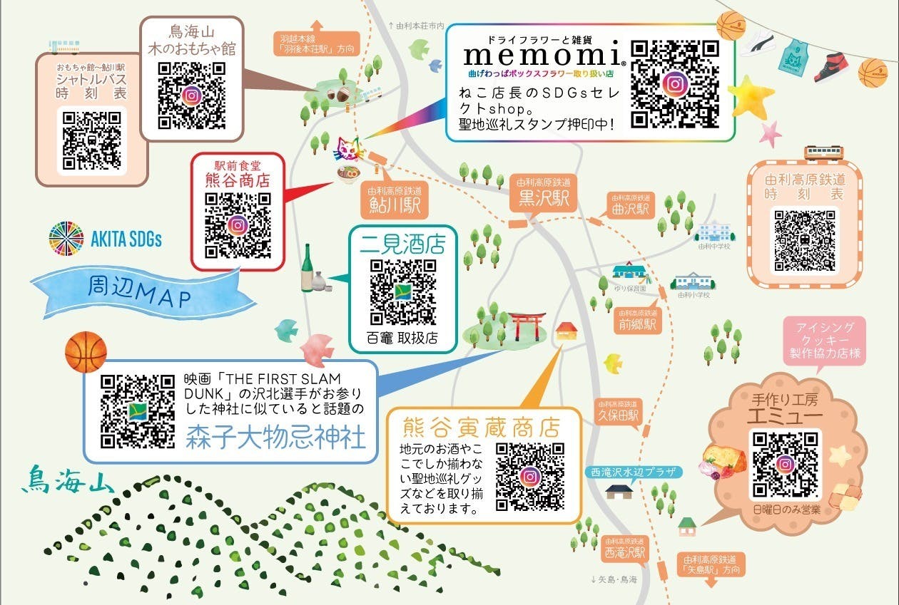 由利地域には、四季折々の自然の美しさ、鳥海山ろく線由利高原鉄道、鳥海山木のおもちゃ館や映画「THE FIRST SLAM DUNK」のワンシーンのモデルになったともいわれる森子大物忌神社などの観光スポットが点在しています。