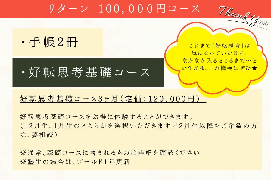 ↓今回、とってもお得に好転思考3カ月をお試しできるように設定させていただきました☆