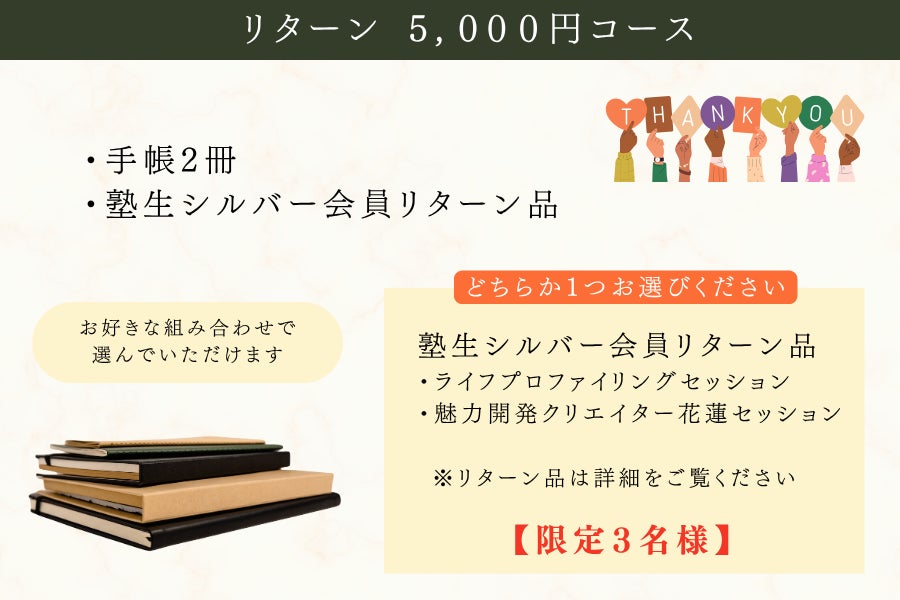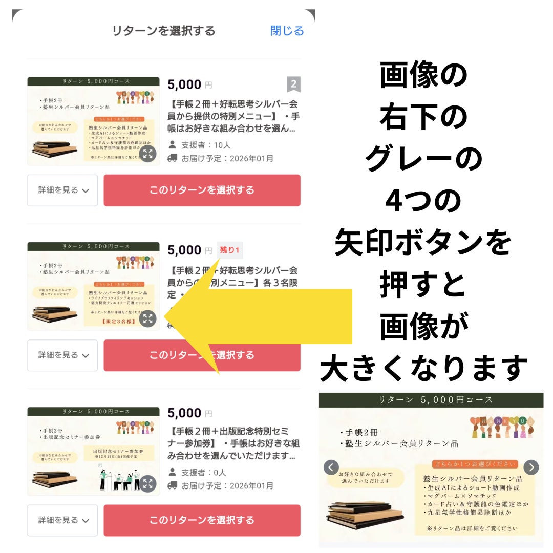 それぞれのリターン品では、2冊セットになっているので、お好きな組み合わせで選んでいただけるようになっています。