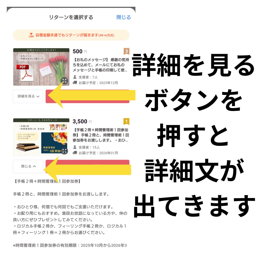 (詳細はCAMPFIREメッセージにて後日ご案内しますので、通知設定をONにしてお待ちください)