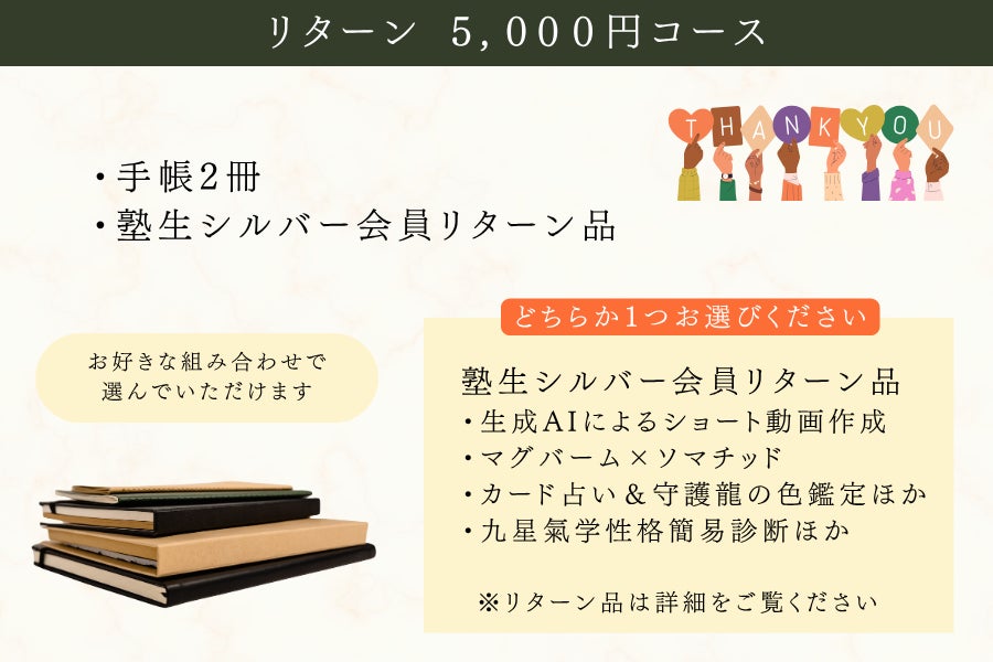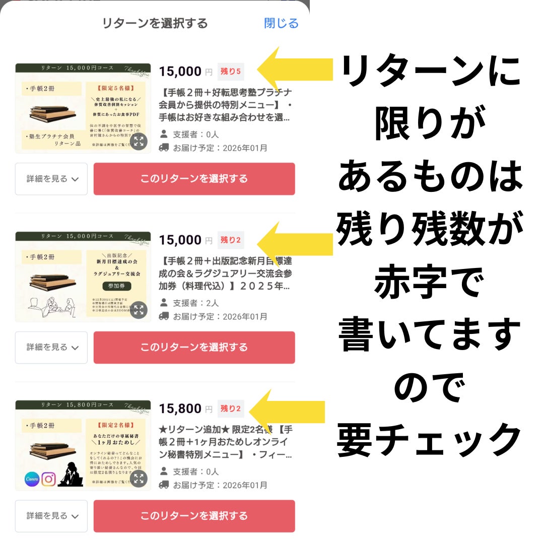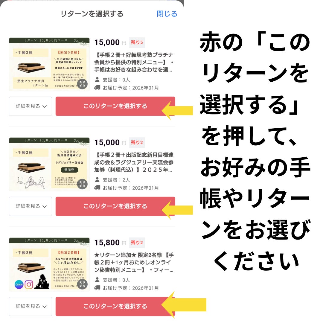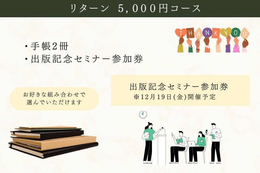 それぞれのリターン品では、2冊セットになっているので、お好きな組み合わせで選んでいただけるようになっています。