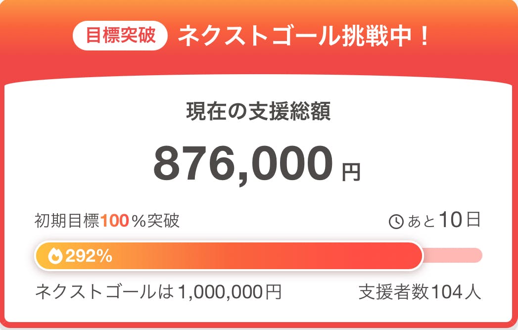 達成率は290%を突破することが出来ました!最終目標の100万円まであと少しというところまできています。