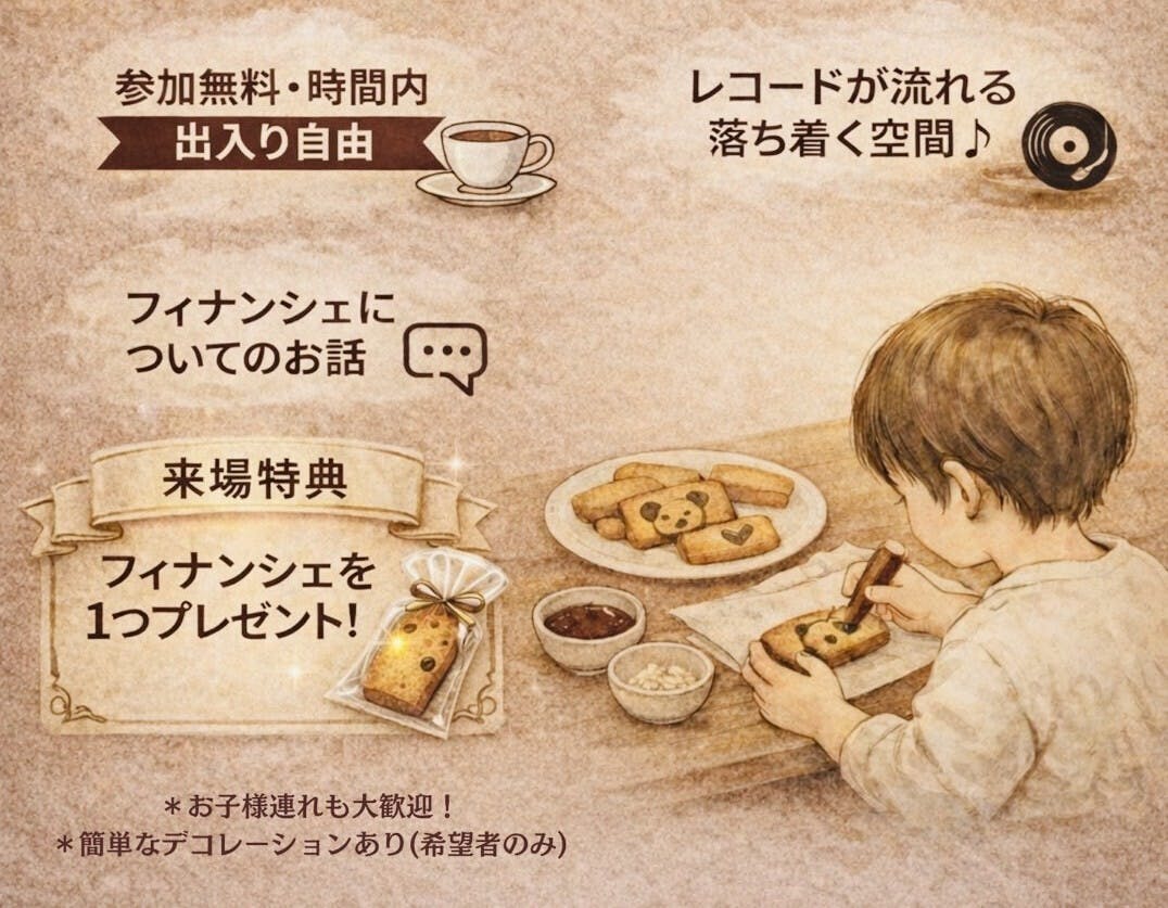 フィナンシェのデコレーションも実施予定なためお子様とのお出かけにもよし、