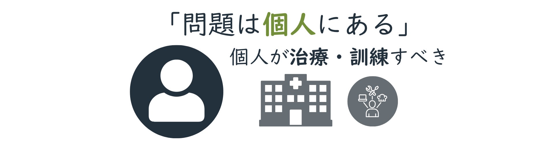 「問題は個人にあり、治療や訓練で改善すべき」と捉えるのに対し、
