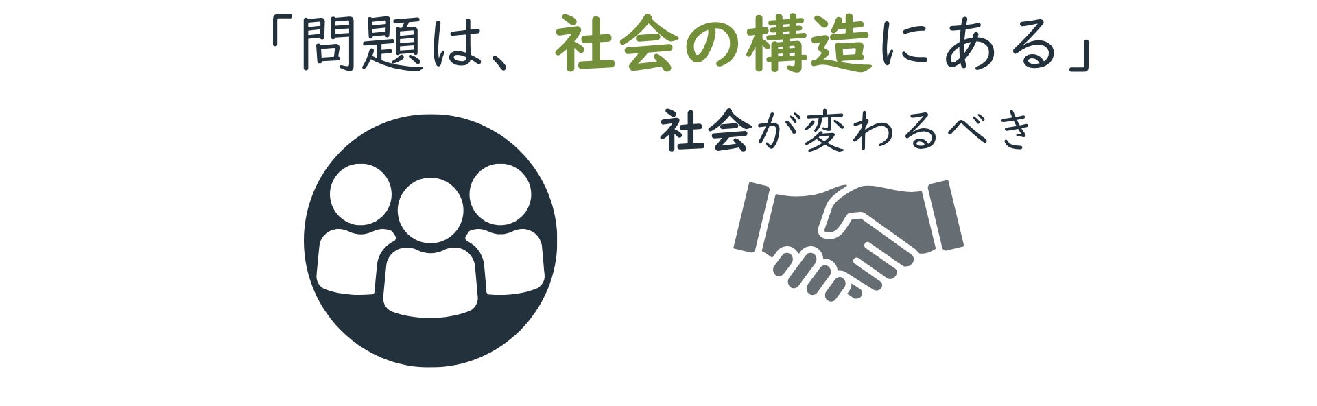 「問題は社会の構造にあり、社会が変わるべきだ」と考えます。