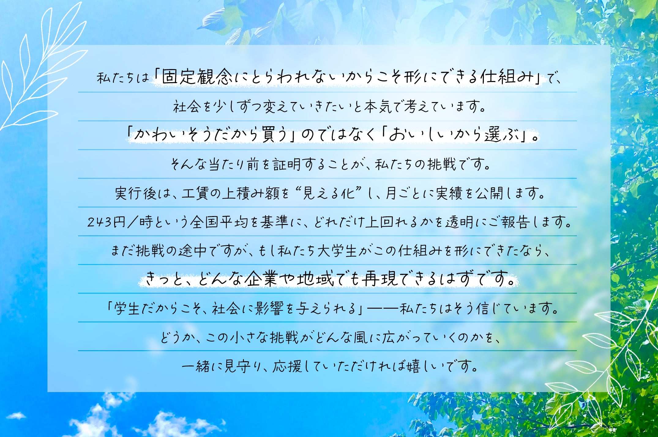おいしさで背中を押せる仕組みを、私たち大学生の手で育てていきます。