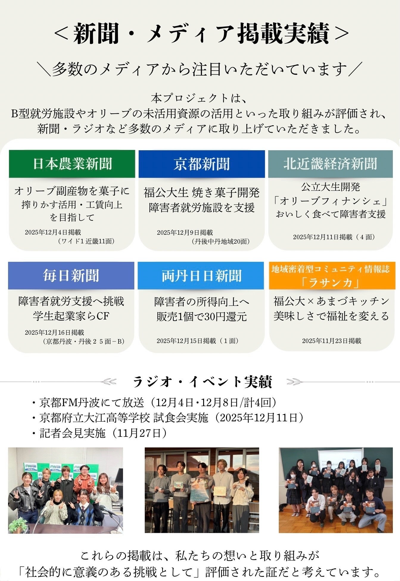 ―― その想いから、この オリーブフィナンシェプロジェクト が始まりました。