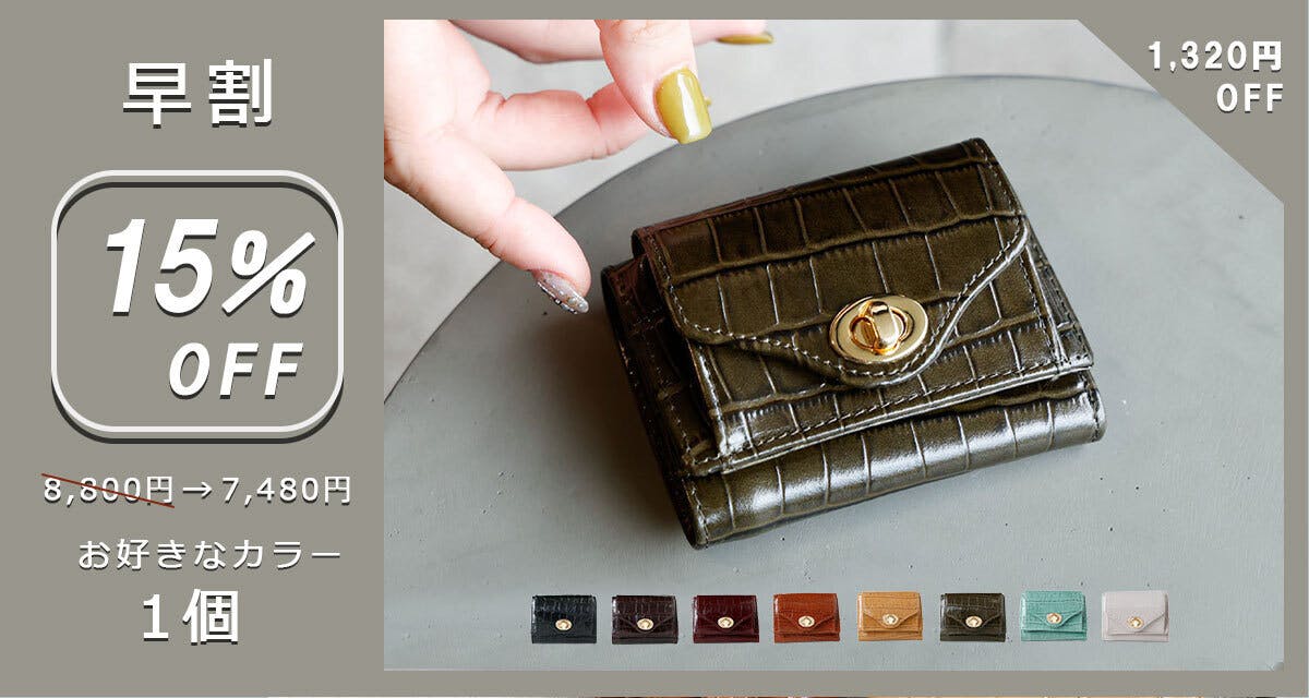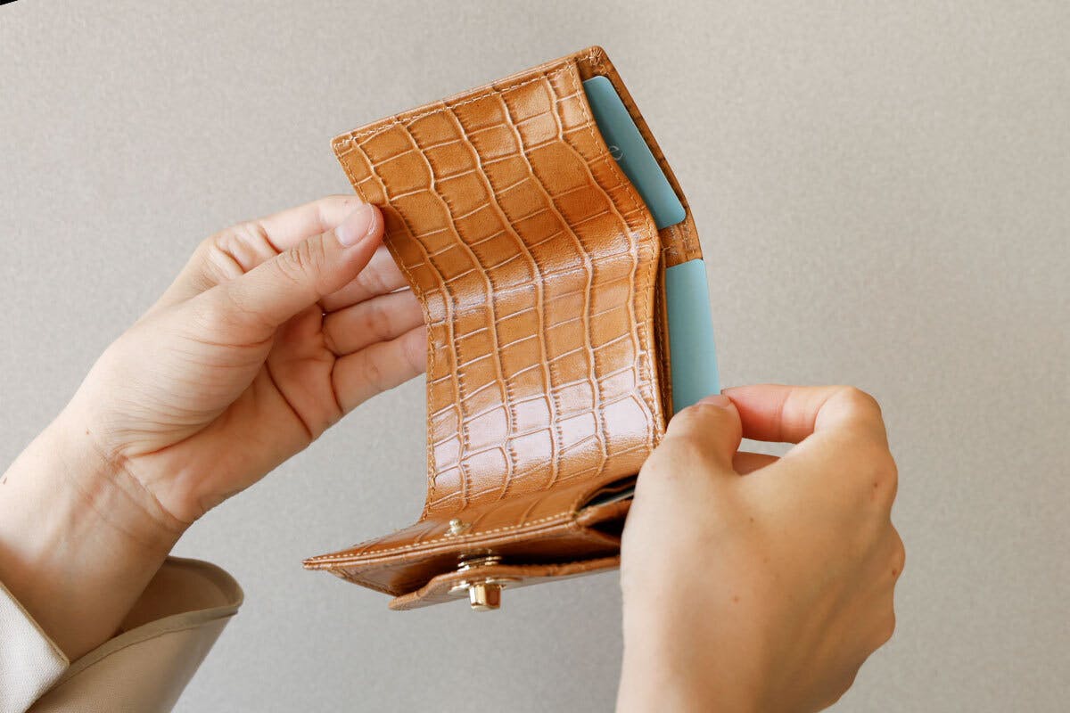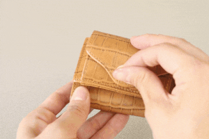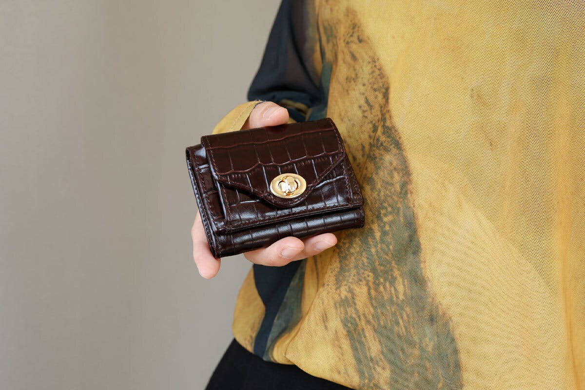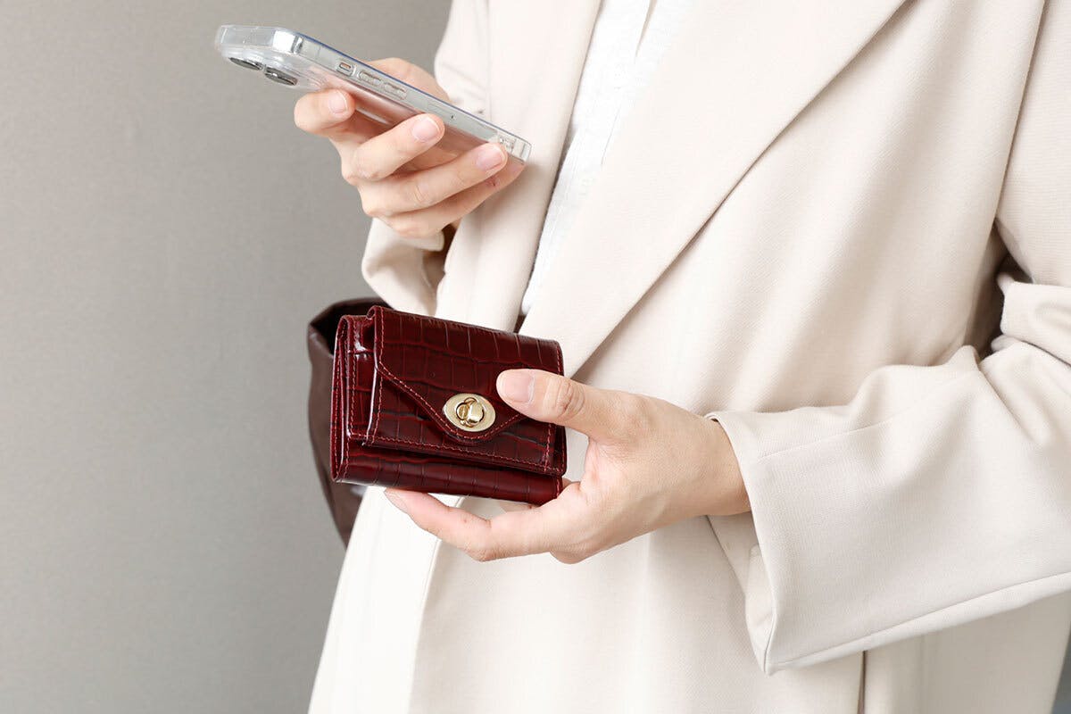 ハイグレードなクロコ型押しミニ財布を、
