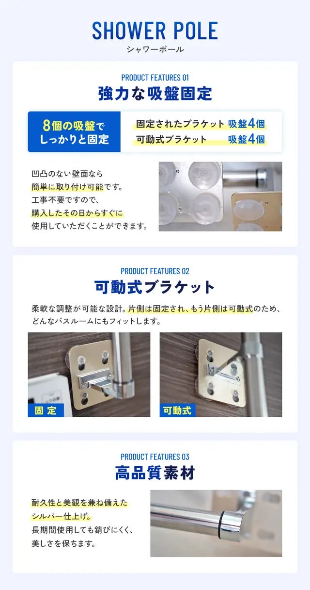 「簡単取り付け、高性能なシャワーポールで快適なシャワータイムを」