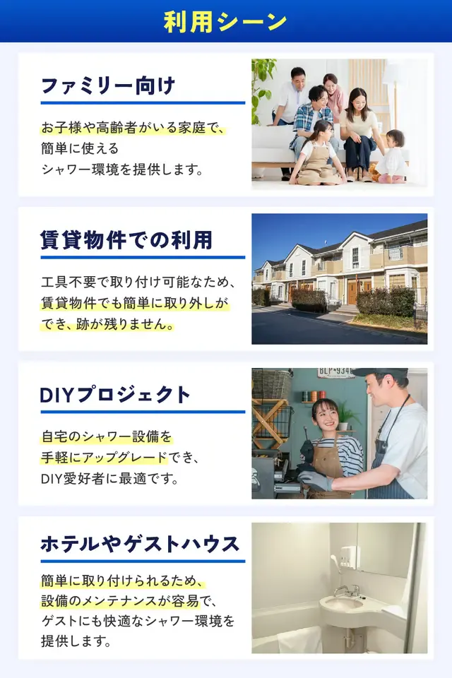小さな子供がいる家庭やペットを飼っている方にとっても、シャワーの使い勝手に不満を感じることがあります。