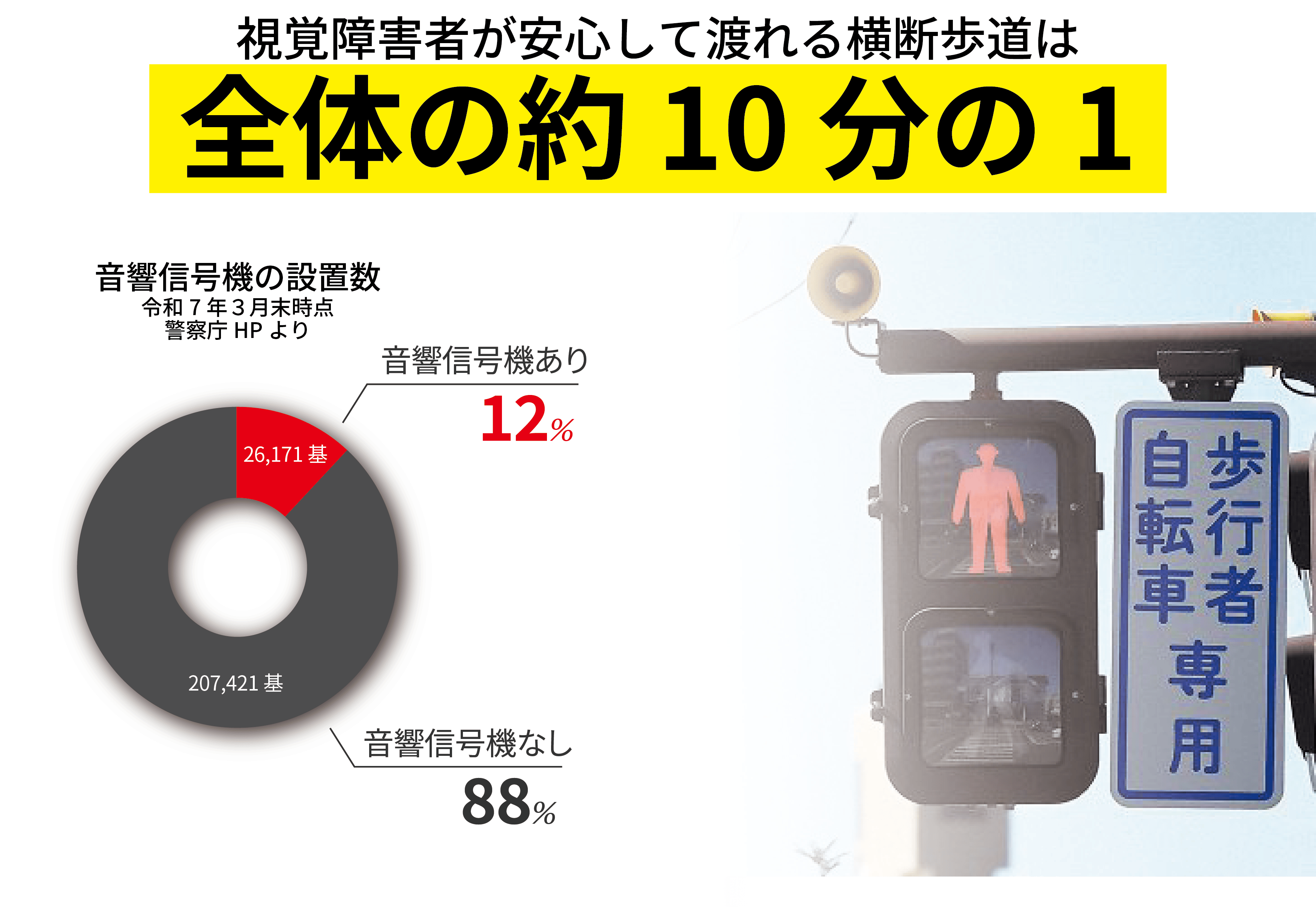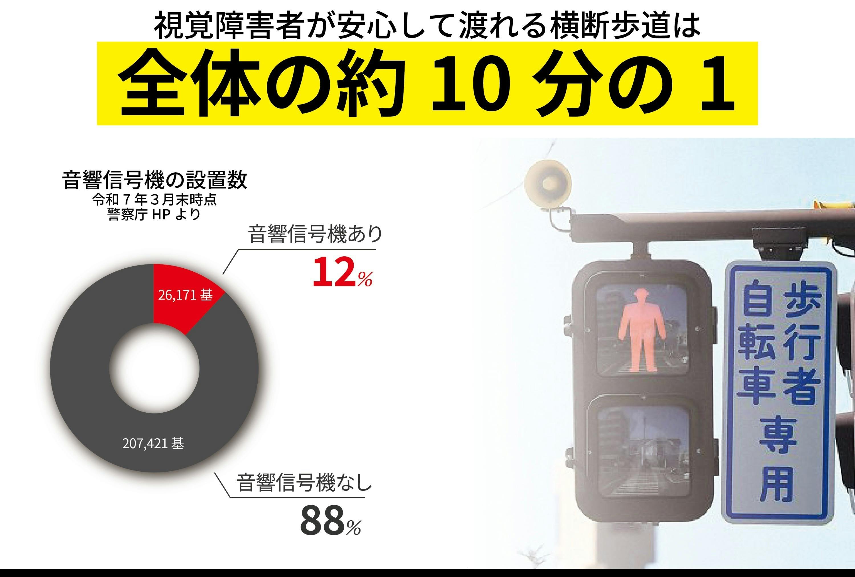 なぜ、このような事故が起きてしまうのでしょうか。大きな要因の一つが、音響信号機の設置数の少なさです。