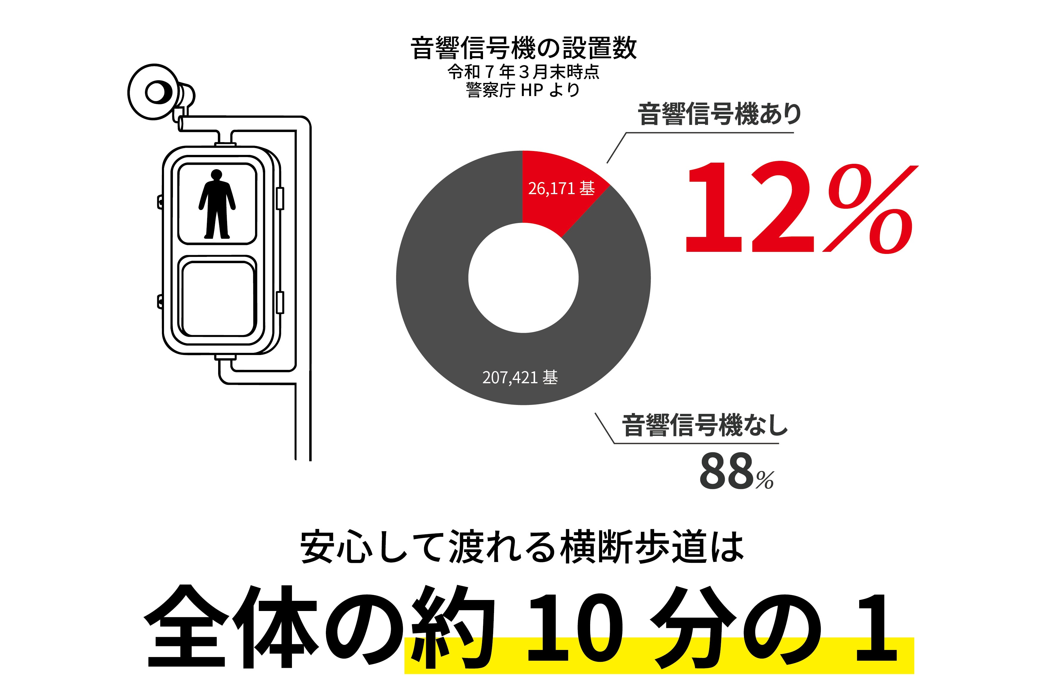 さらに調べていく中で、音響信号機の設置率が非常に低いという現実も知りました。