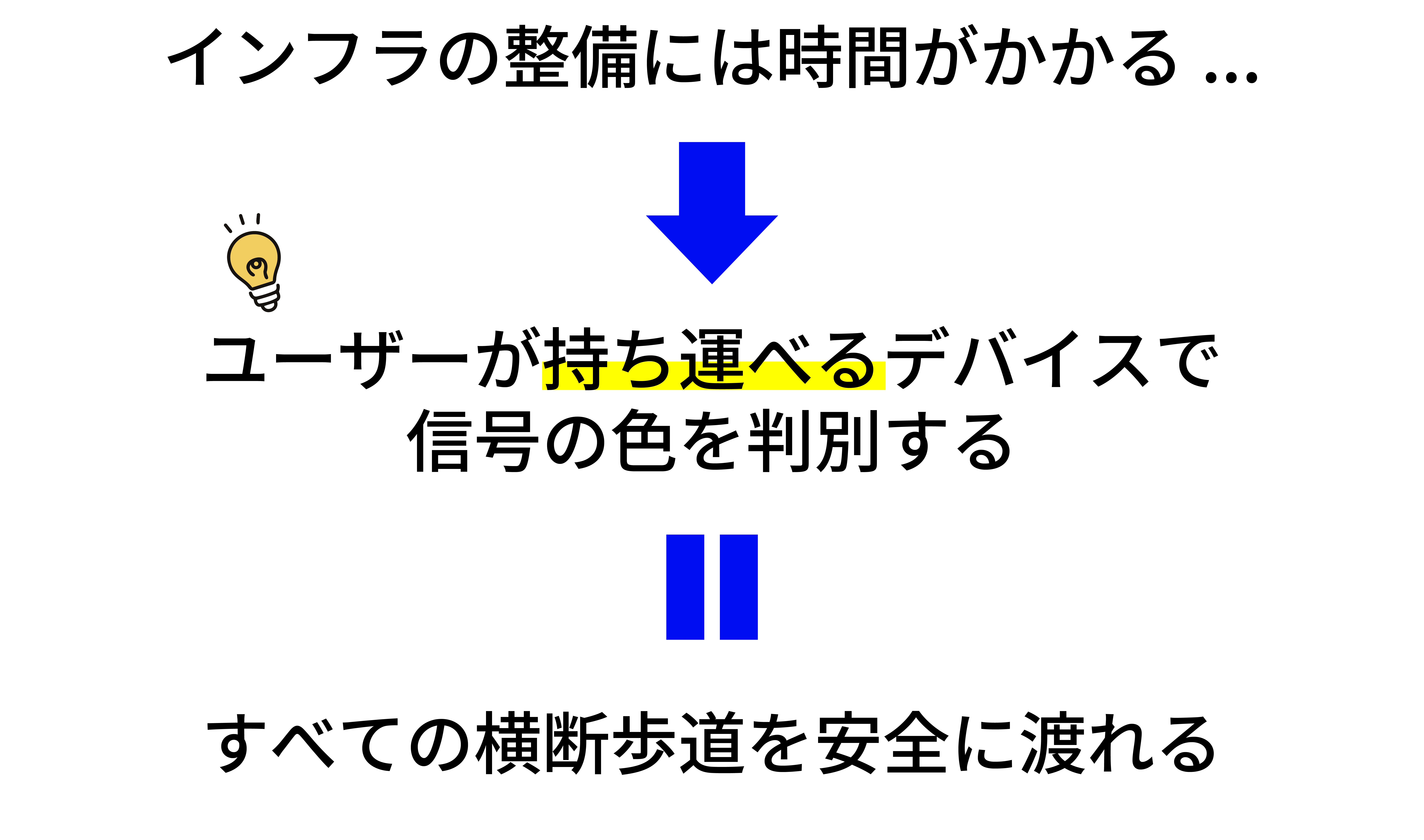 この問題を解決するには、ユーザー個人が持ち運ぶデバイスで信号の色を認識できれば良いと考えました。そこで開発したのが、AISIGです。